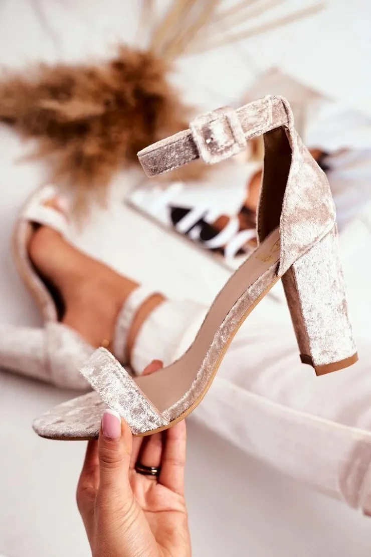 Sandałki na słupku firmy Lu Boo będą idealnie pasowały do sukienki wieczorowej, ale nie tylko! Welurowe elementy pięknie odbijają światło, a także są niesamowicie przyjemne w dotyku. Niezwykle kobiecy model zachwyci każdego! Buty są zapinane na sprzączkę i mają możliwość regulacji. Jeśli szukasz stabilnego, ale wysokiego sandałka to model dla Ciebie!