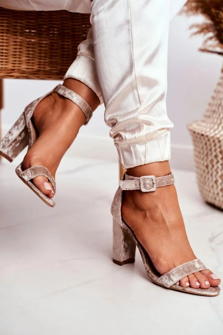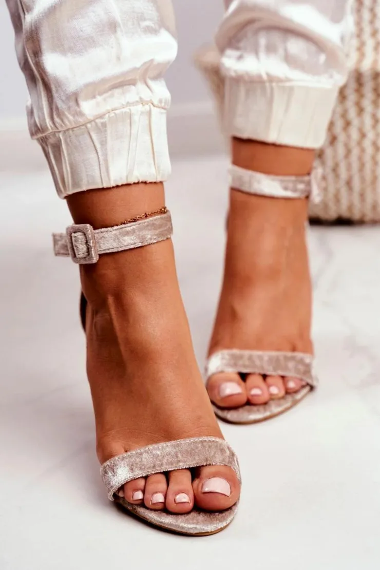 Boto Sandały Na Obcasie*Lu Boo Sandałki Welurowe Beżowe Na Słupku Catherine