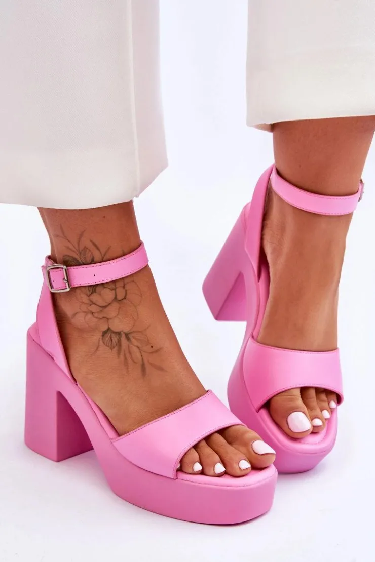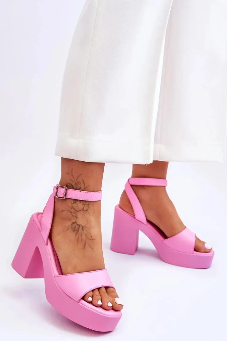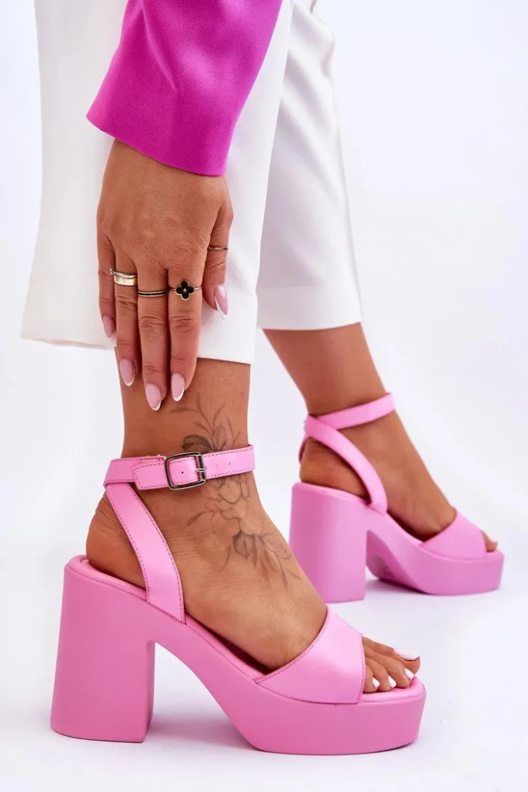 Damskie, modne sandałki zostały wykonane z eko skóry. Model ten posiada klasyczne zapinanie na regulowany pasek ze sprzączką. Sandałki osadzono na masywnej platformie oraz obcasie w postaci szerokiego słupka. Model ten posiada na przodzie szerszy paseczek. Miękka wkładka z eko skóry zapewni wygodne użytkowanie. Przy wyborze rozmiaru prosimy sugerować się tabelą rozmiarów.