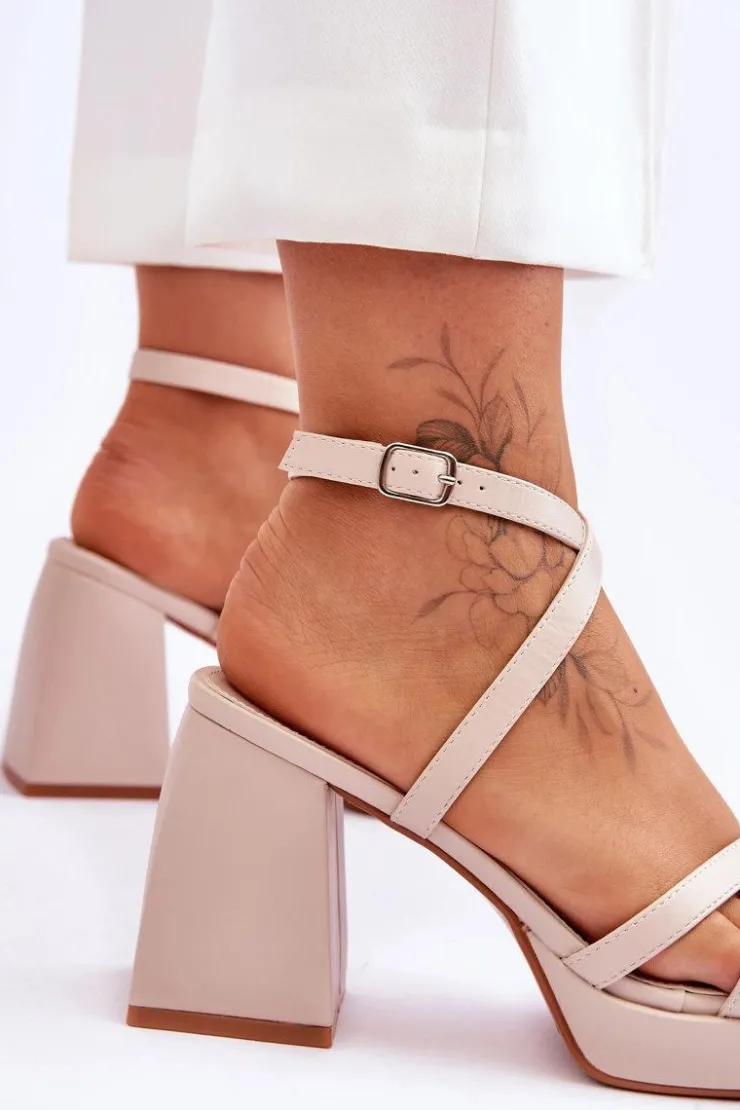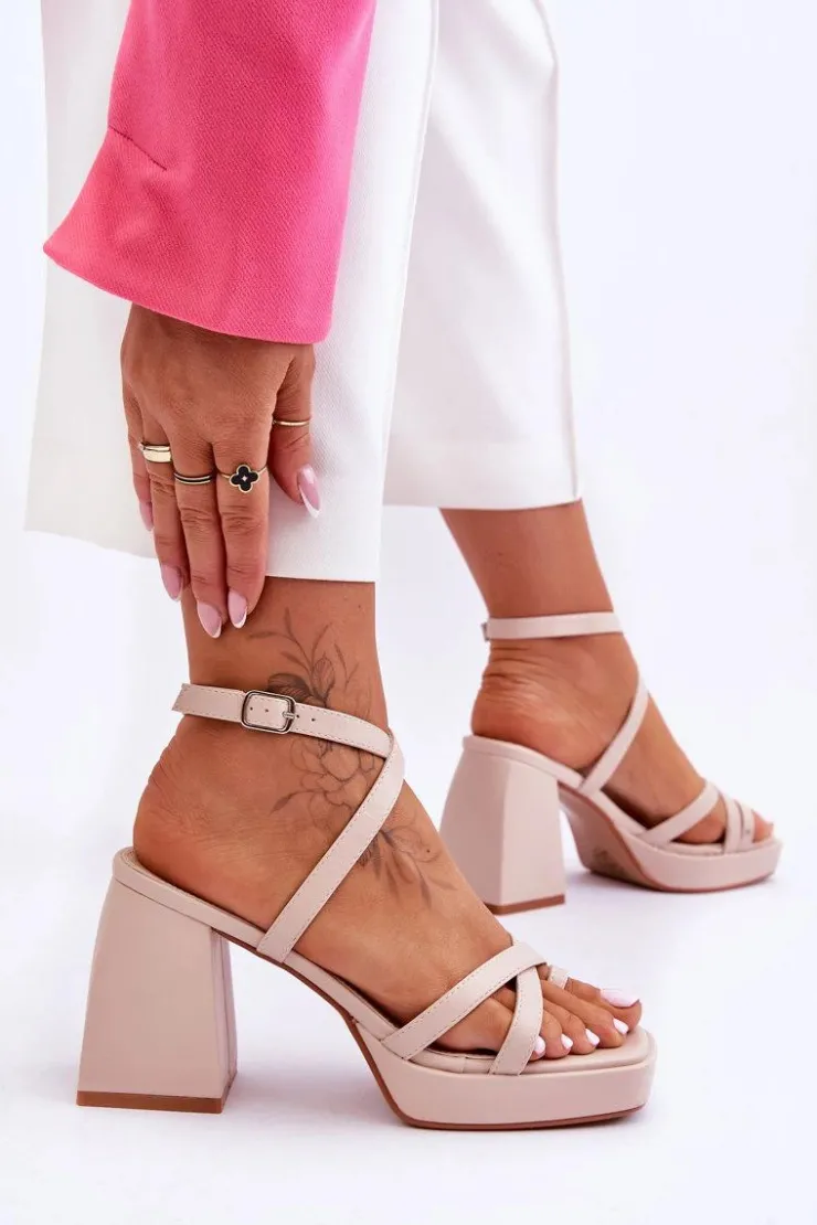 Wyjątkowe sandałki damskie wykonane z eko skóry świetnie sprawdzą się w wielu stylizacjach! Miękka wkładka zapewni wygodne użytkowanie. Sandałki posiadają z przodu paseczki. Zapinane wokół kostki na regulowany pasek ze sprzączką. Model ten został osadzony na masywnym, wyższym obcasie i platformie. Przy wyborze rozmiaru prosimy sugerować się tabelą rozmiarów.