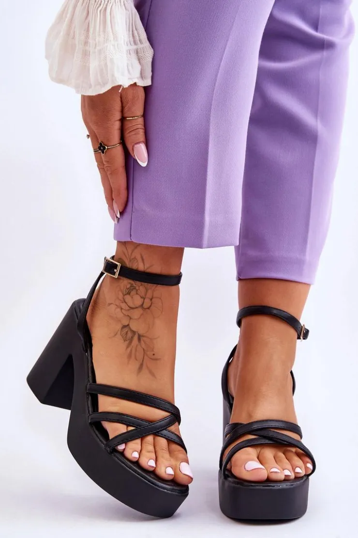 Boto Sandały Na Obcasie*Modne Sandały Na Obcasie Z Paseczkami Czarne Shemira