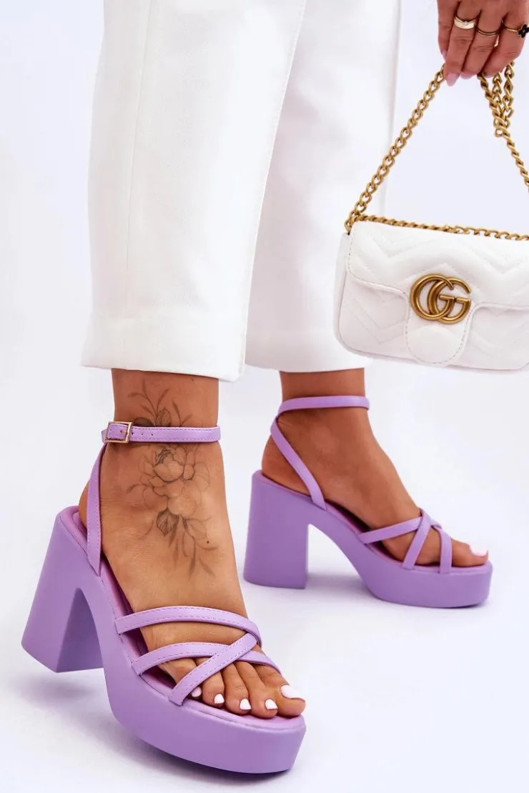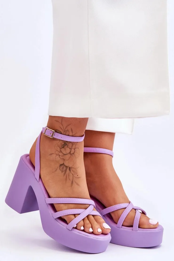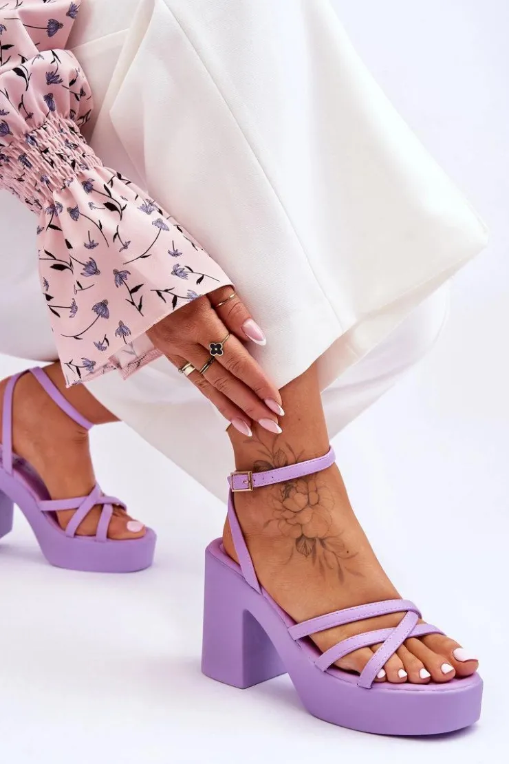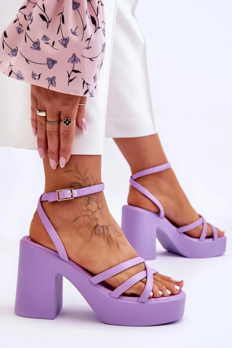 Wyjątkowe, damskie sandały zostały wykonane z eko skóry. Model ten posiada zapinanie wokół kostki na regulowany pasek ze sprzączką i jest niezwykle lekki. Sandałki osadzono na platformie oraz masywnym, szerokim słupku. Wygodna wkładka została wykonana także z eko skóry. Przy wyborze rozmiaru prosimy sugerować się tabelą rozmiarów.