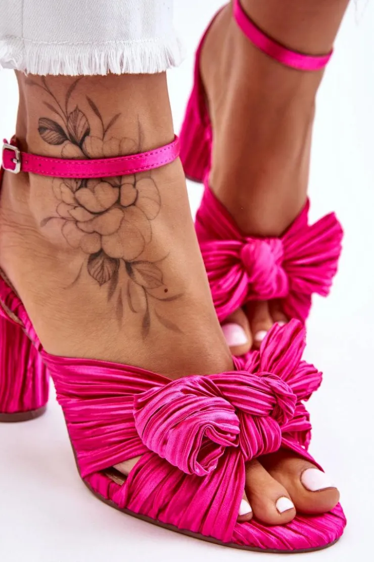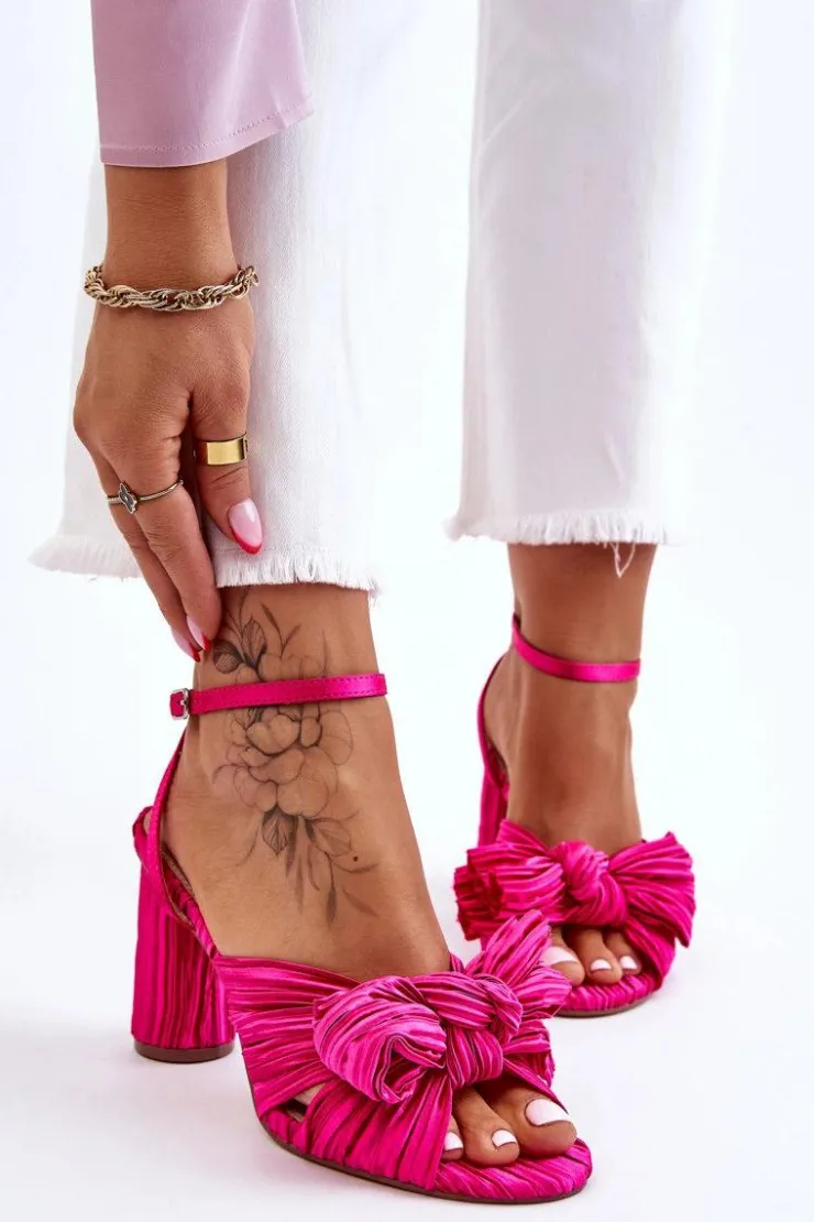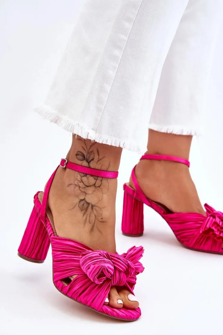 Wyjątkowe sandały na obcasie w postaci stabilnego słupka. Buty te posiadają z przodu kokardę, która dodaje tym butom elegancji. Miękka wkładka z eko skóry zadba o Twój komfort podczas użytkowania. Model ten świetnie sprawdzi się na różnego rodzaju ważnych uroczystościach. Ten model na pewno Ci się spodoba! Przy wyborze rozmiaru prosimy sugerować się tabelą rozmiarów.