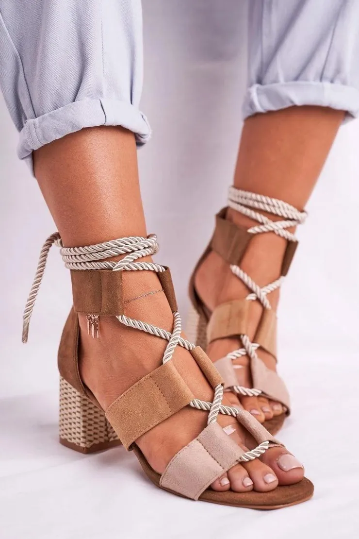 Boto Sandały Na Obcasie*Sandałki Damskie Na Słupku Zamszowe Beżowe Beckie