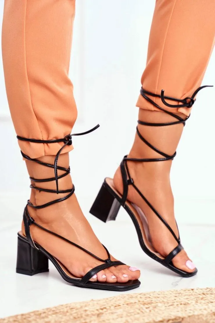 Boto Sandały Na Obcasie*Sandały Damskie Na Słupku Wiązane Czarne Morning