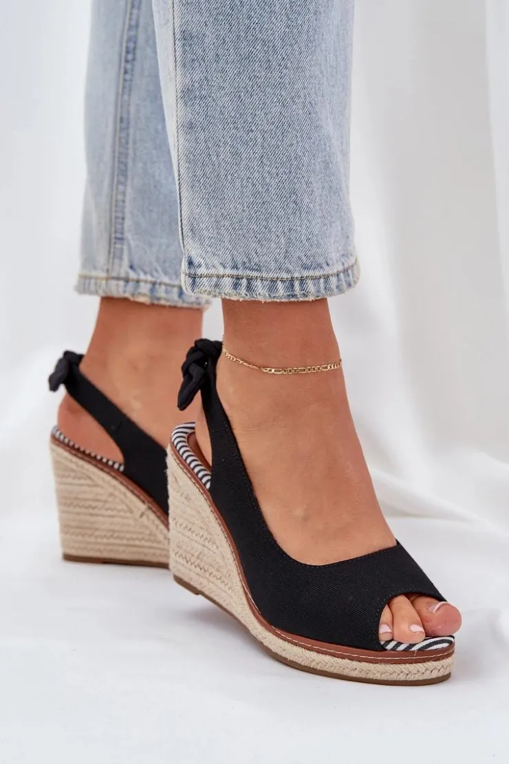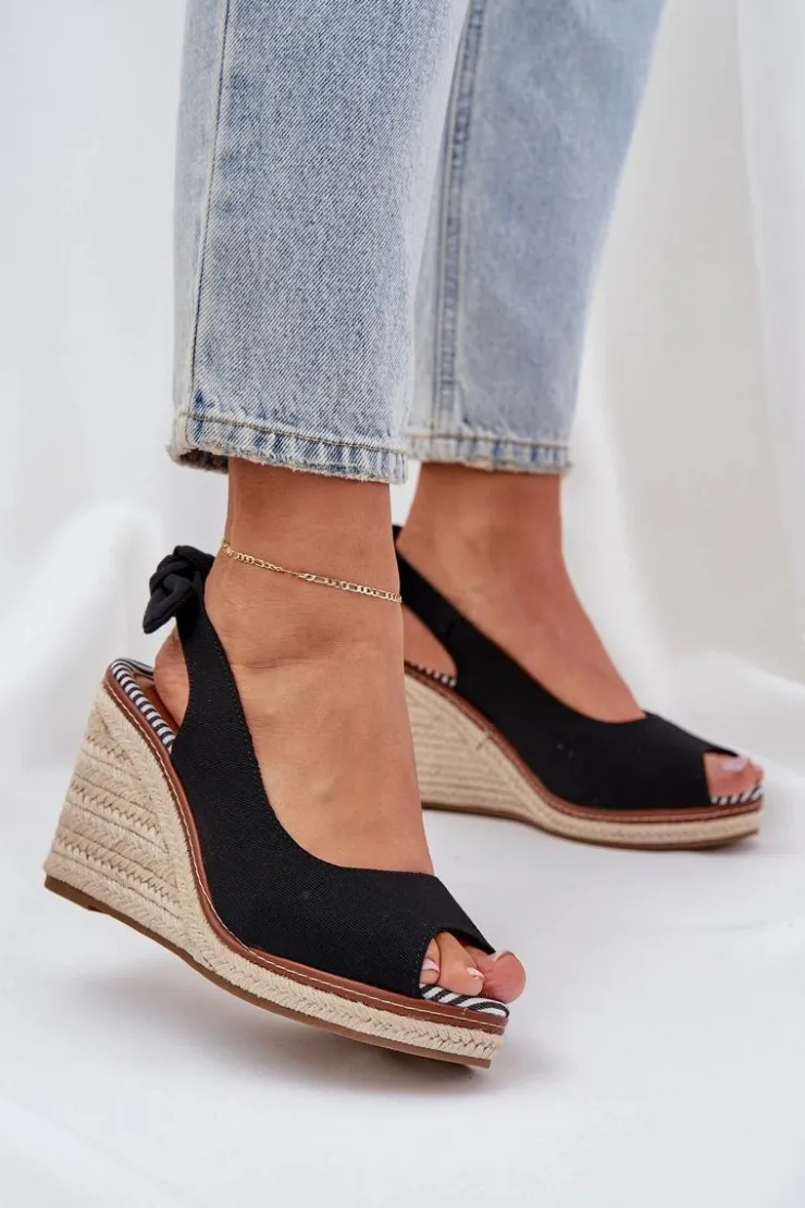 Sandały damskie z materiału tekstylnego to lekka i wygodna propozycja na ciepłe dni. Osadzone na koturnie z plecionką. Z tyłu znajduje się pętelka. Te sandały świetnie komponują się w letnich stylizacjach, łącząc komfort z modnym, naturalnym wyglądem. Idealne na wakacyjne spacery czy codzienne wyjścia. Przy wyborze rozmiaru prosimy sugerować się tabelą rozmiarów.