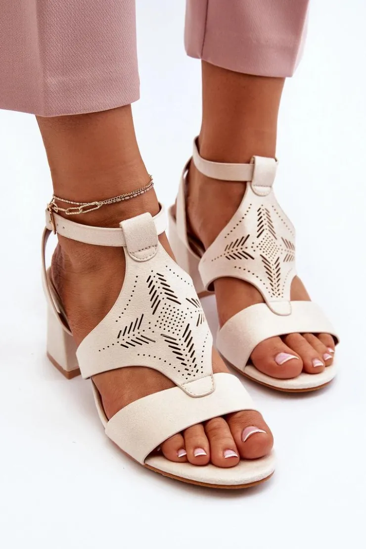Boto Sandały Na Obcasie*Sandały Na Niskim Obcasie Beżowe Eleriva