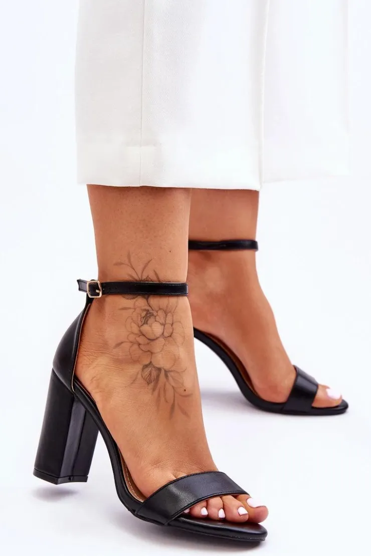 Sandałki damskie zostały wykonane z eko skóry. Świetnie sprawdzą się w wielu stylizacjach podczas letniego sezonu! Miękka wkładka zapewni wygodne użytkowanie. Sandałki posiadają z przodu paseczek oraz usztywniany zapiętek. Zapinane wokół kostki na regulowany pasek ze sprzączką. Model ten został osadzony obcasie w postaci słupka. Przy wyborze rozmiaru prosimy sugerować się tabelą rozmiarów.