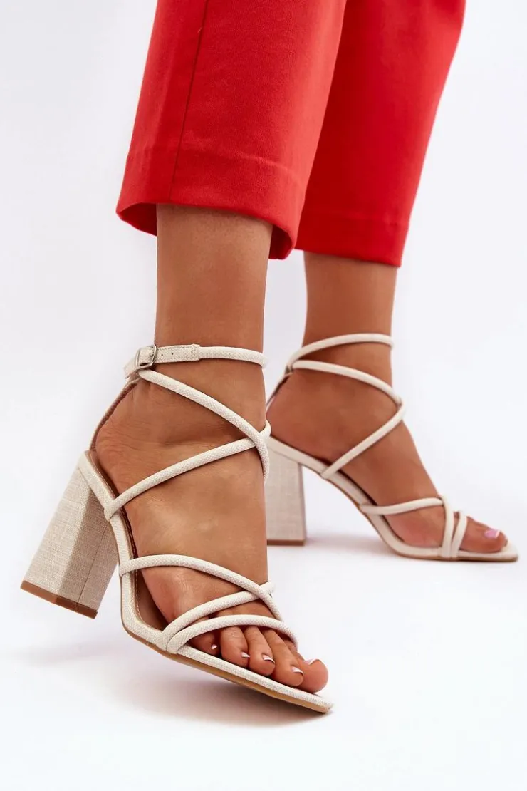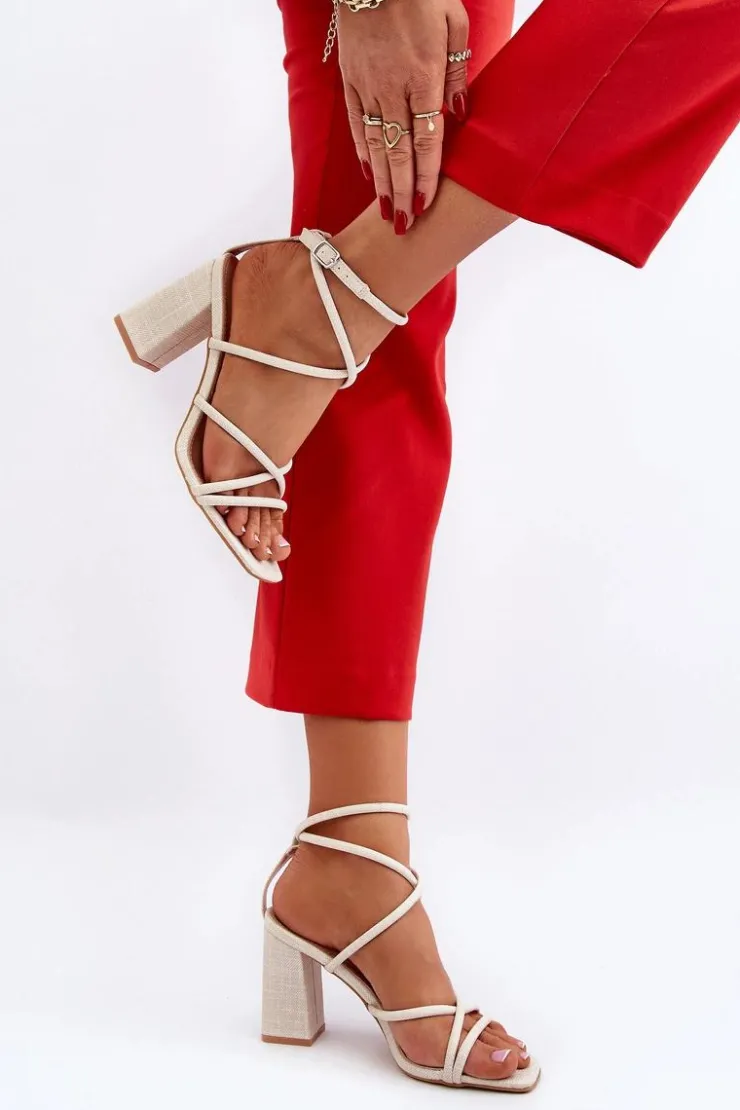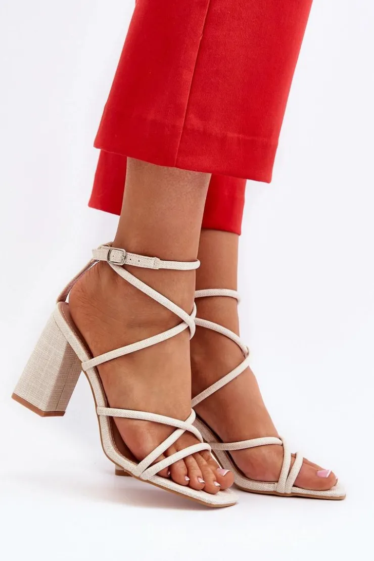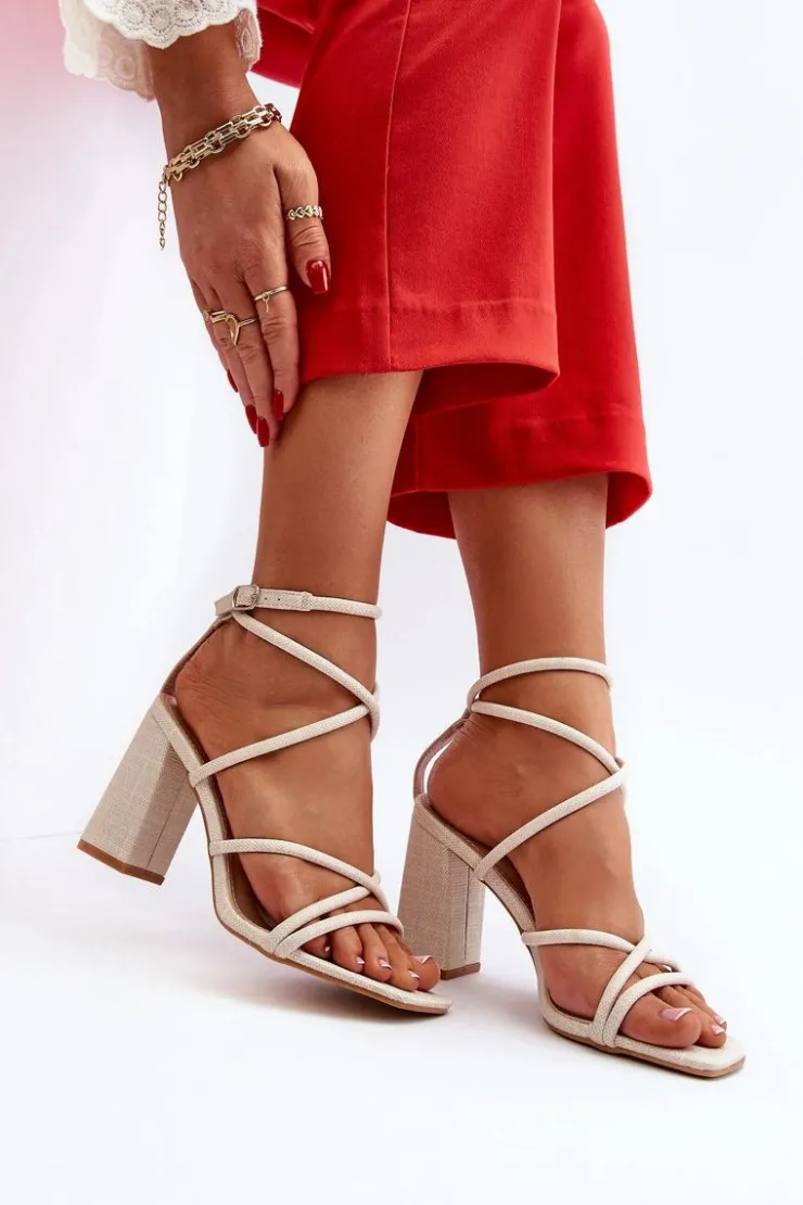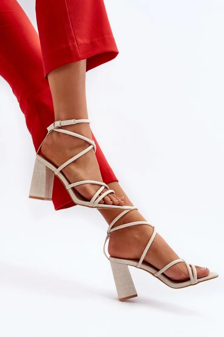 Boto Sandały Na Obcasie*Sandały Na Słupku Z Paskami Nude Herfiana