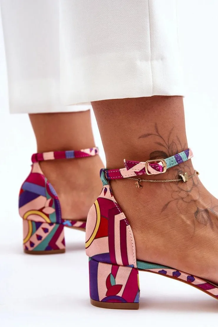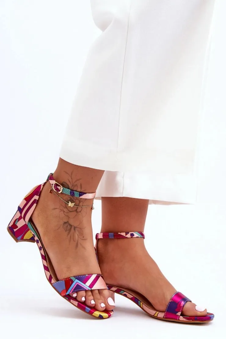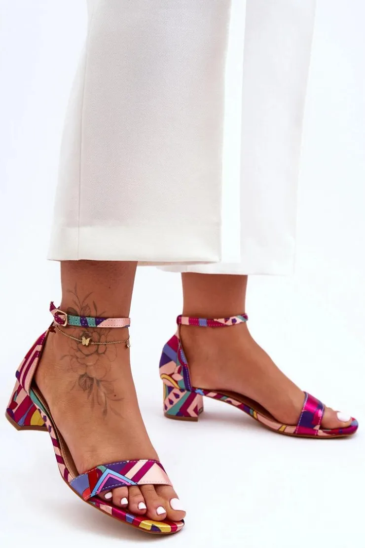 Boto Sandały Na Obcasie*Satynowe Sandałki Na Obcasie We Wzory Czerwony Mix Inspire Me!