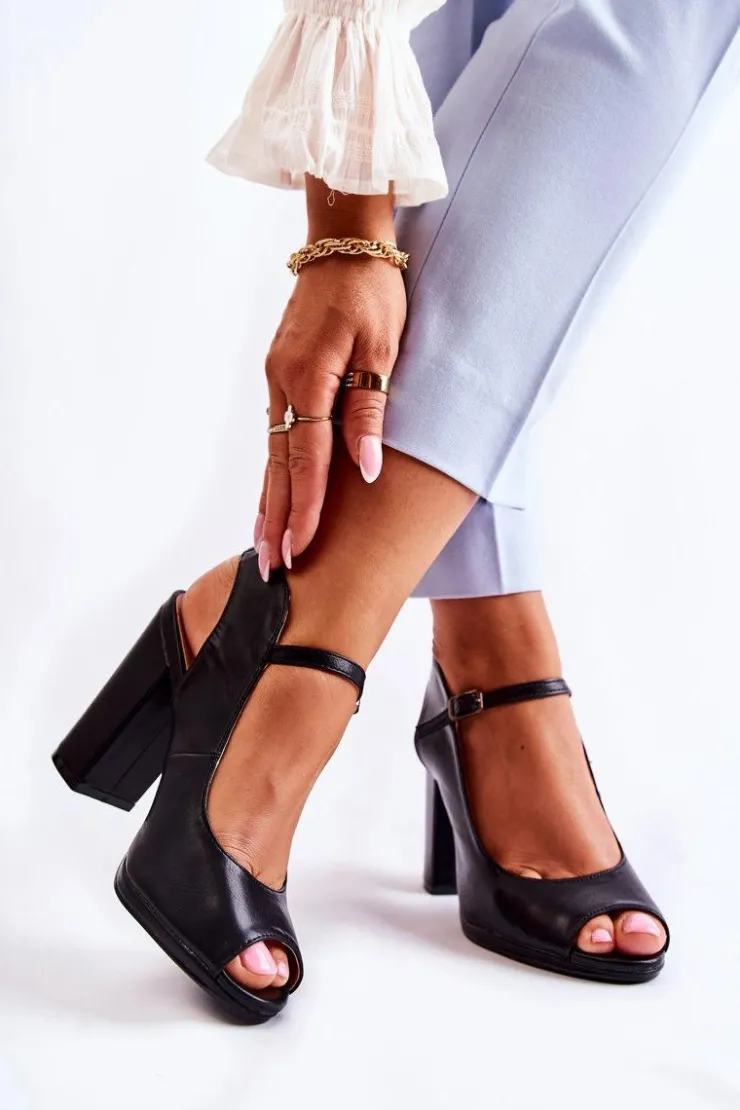 Klasyczne sandały zostały osadzone na obcasie w postaci słupka. Posiadają regulowany pasek zapinany na sprzączkę. Buty świetnie sprawdzą się w wielu stylizacjach. Wykonane z eko skóry zarówno na zewnątrz, jak i w środku. O komfort zadba miękka wkładka, która jest bardzo wygodna podczas użytkowania. Nosek odkryty i zaokrąglony. Przy wyborze rozmiaru prosimy sugerować się tabelą rozmiarów.
