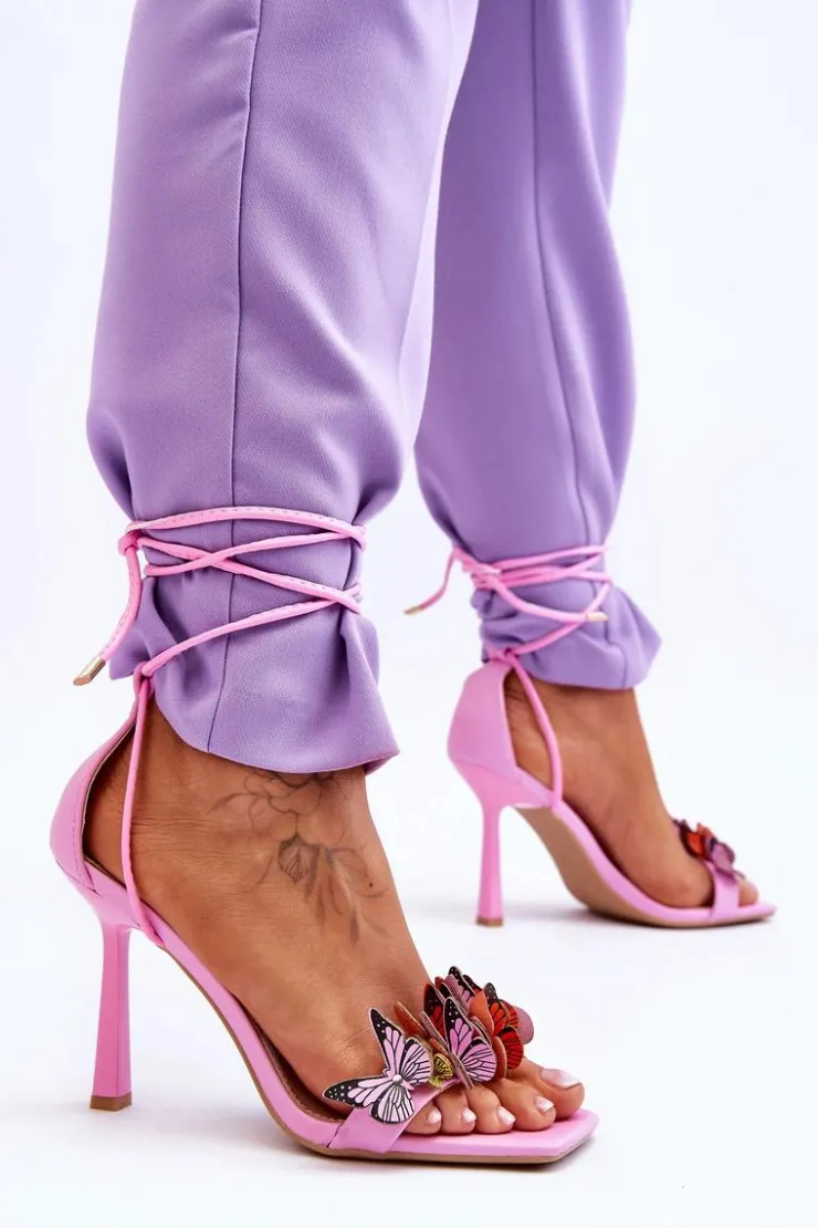 Niesamowite sandałki damskie wykonane z eko skóry posiadają na przodzie urocze motylki. Model ten jest wiązany na wysokości łydki. Dodatkowo zapiętek w tych butach jest usztywniany. Tym modelem urozmaicisz wiele stylizacji! Sandałki zostały osadzone na szpilce. Koniecznie powinny być Twoje! Przy wyborze rozmiaru prosimy sugerować się tabelą rozmiarów.