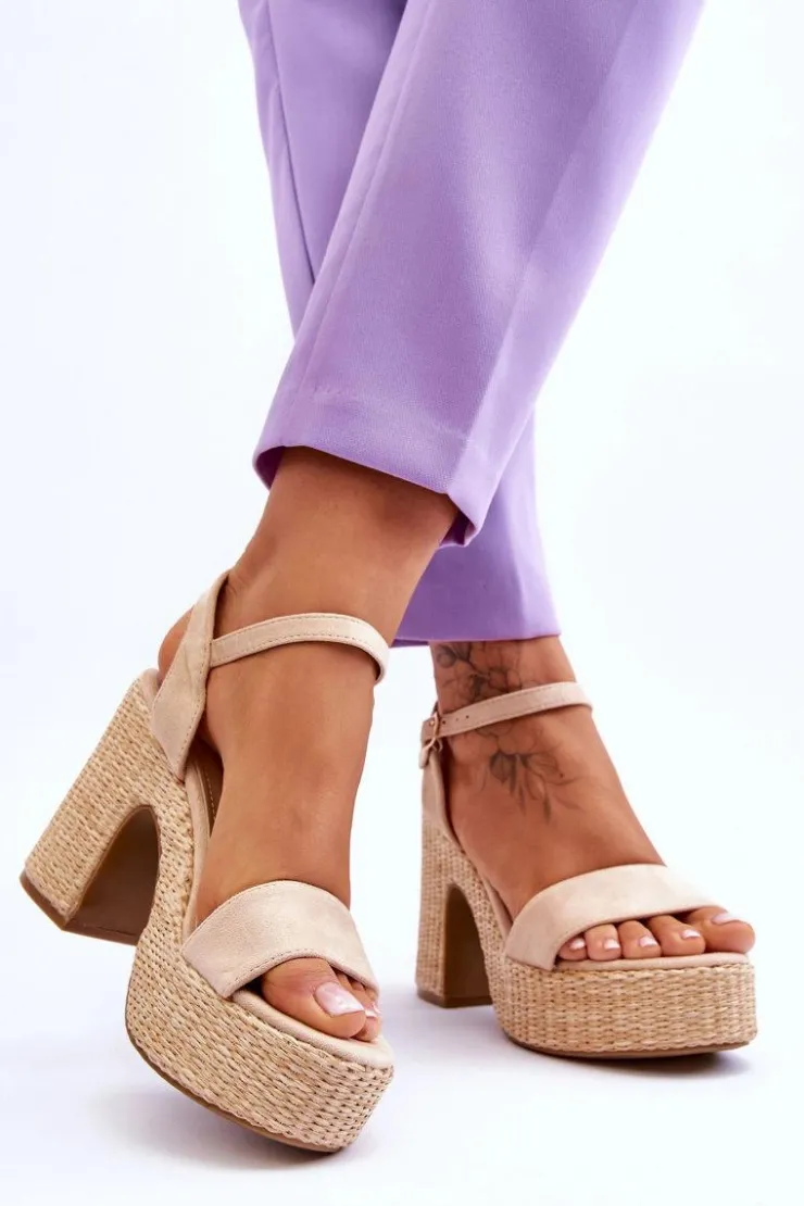Świetne sandałki na masywnym obcasie w postaci słupka oraz platformie. Wykonane z przyjemnej w dotyku ekologicznej skóry. Sandałki posiadają odkryty, zaokrąglony nosek. Zapinane wokół kostki na regulowany pasek ze sprzączką. Ten model z pewnością sprawdzi się w wielu stylizacjach! Przy wyborze rozmiaru prosimy sugerować się tabelą rozmiarów.