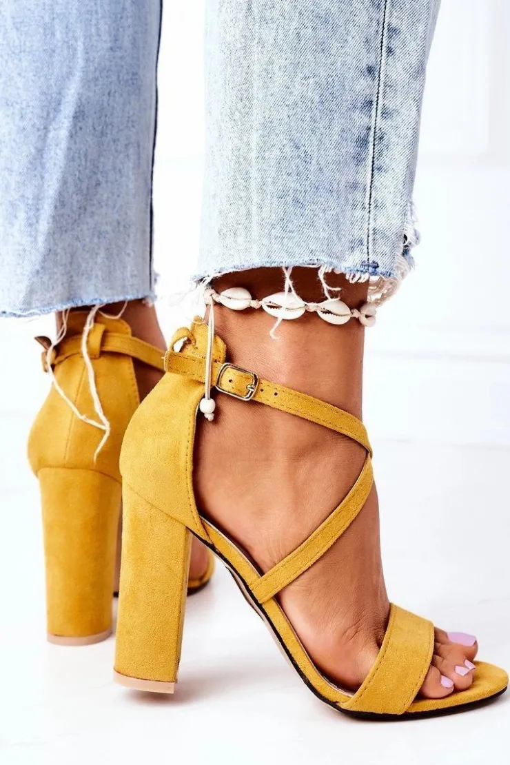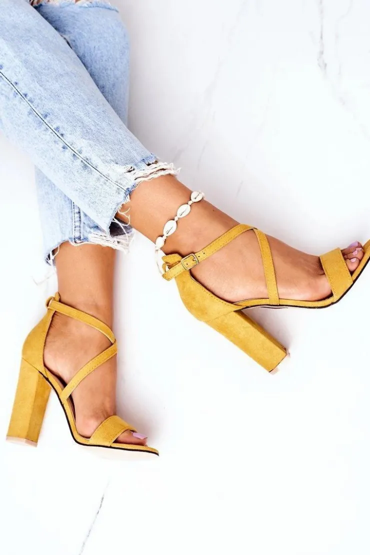 Eleganckie sandały na słupku wykonane z eko zamszu. Miękka wkładka z eko skóry oraz wygodny obcas zapewnią komfort. Przy wyborze rozmiaru prosimy sugerować się tabelą rozmiarów.