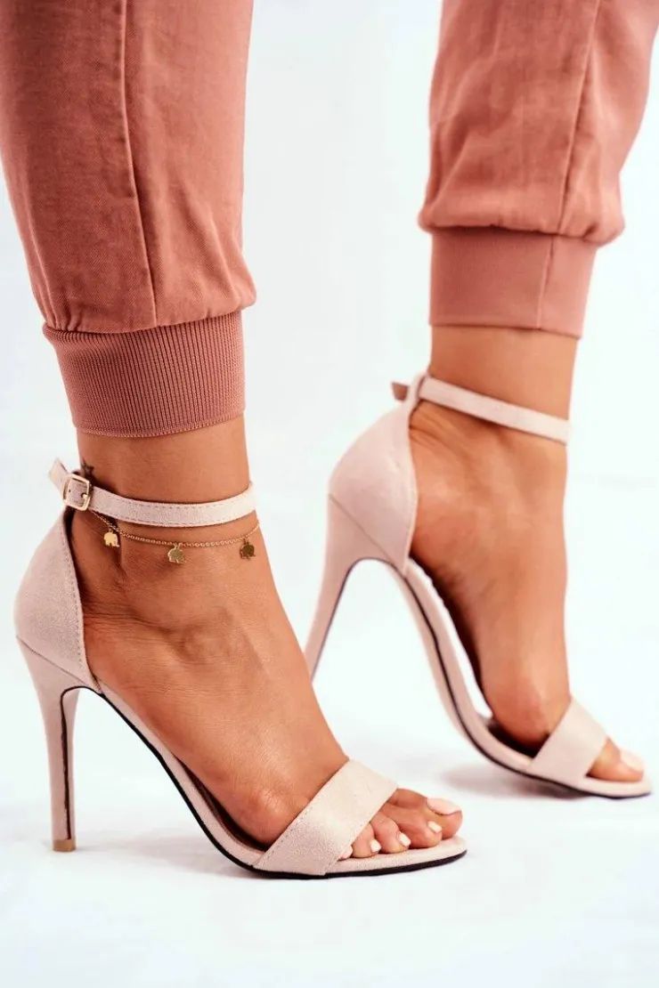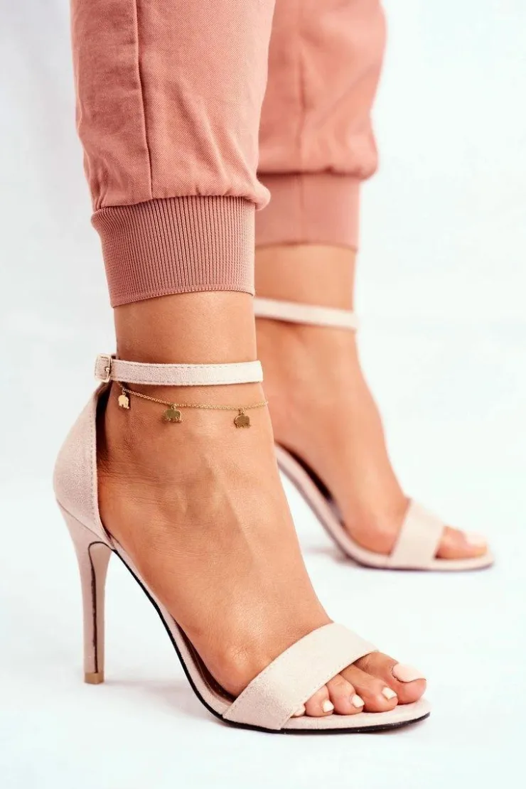 Klasyczne sandały na szpilce wykonane z eko zamszu. Przy wyborze rozmiaru prosimy sugerować się tabelą rozmiarów.