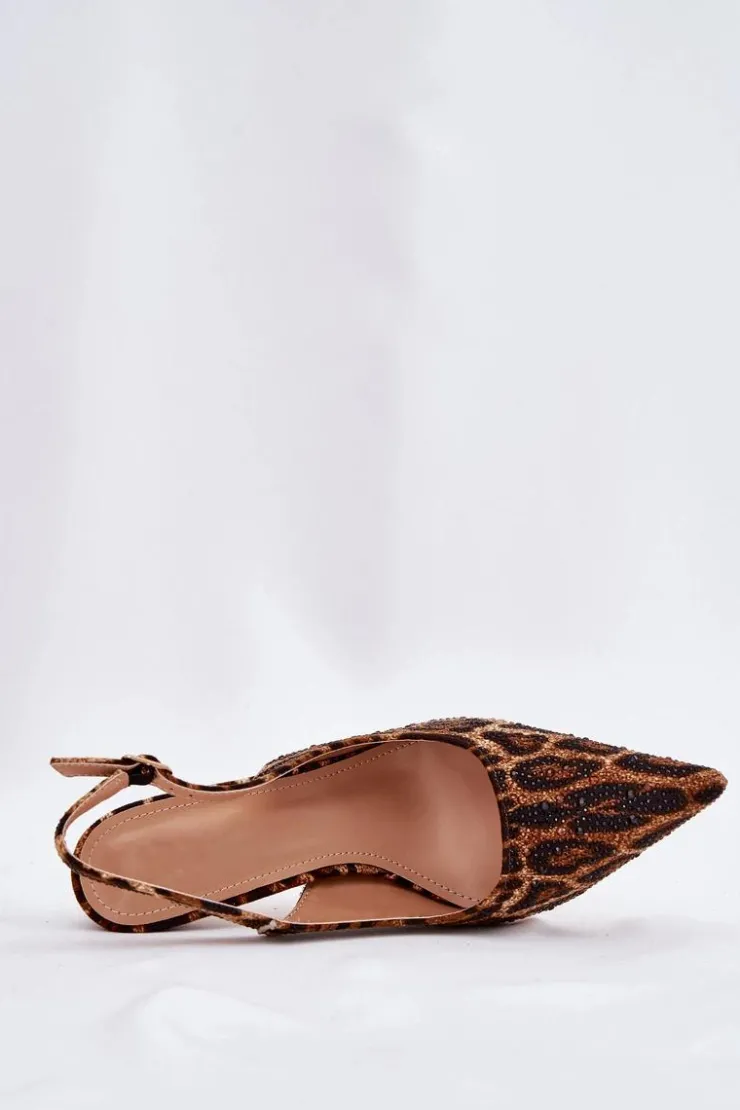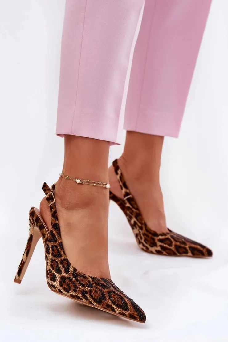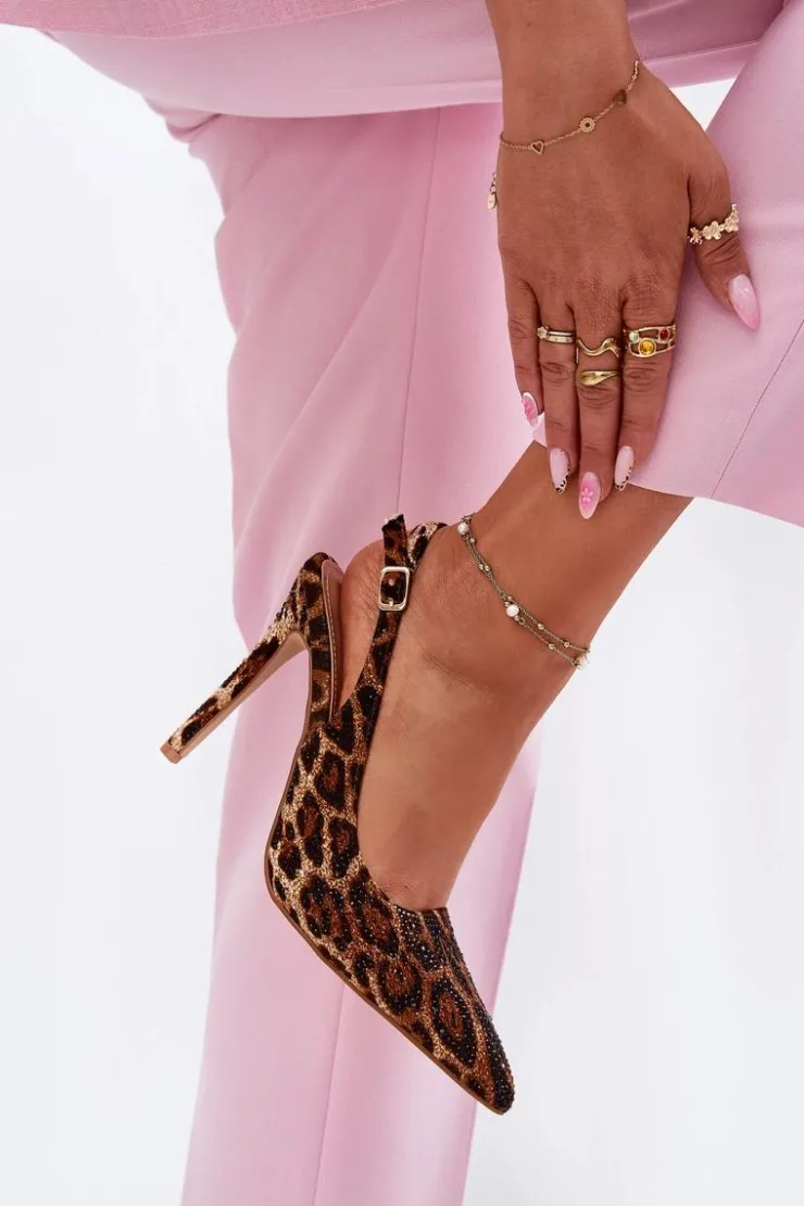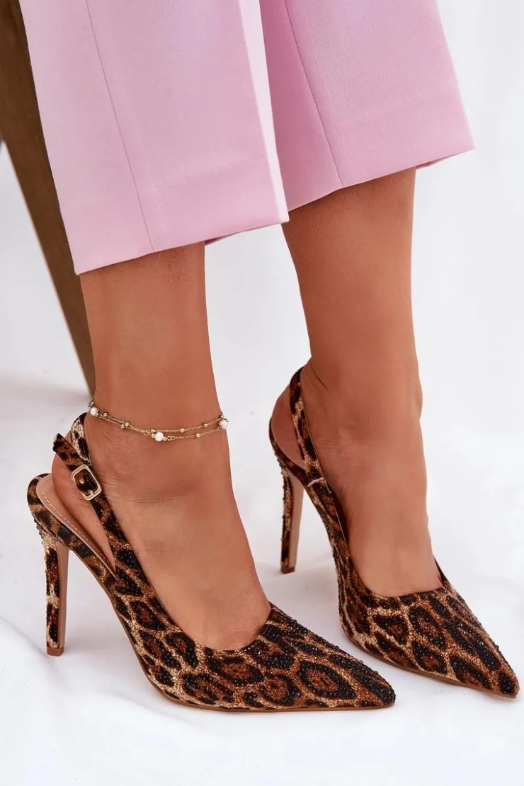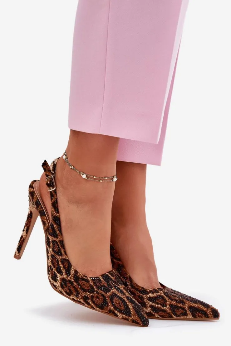 Te eleganckie sandały na szpilce z pewnością przyciągną uwagę wszystkich wokół! Noski w szpic pięknie wysmuklają nogi, a wygodne zapięcie na regulowany pasek ze sprzączką gwarantuje perfekcyjne dopasowanie. Zdobienie dodaje blasku i sprawiają, że wyróżnisz się w tłumie. To doskonałe obuwie na ważne uroczystości, przyjęcia lub romantyczne wieczory. Przy wyborze rozmiaru prosimy sugerować się tabelą rozmiarów.