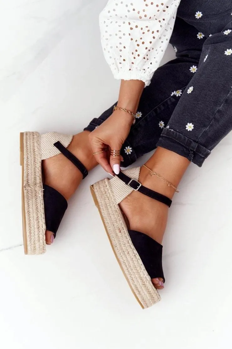 Piękne oraz wygodne sandały na platformie. Sandały zostały wykonane z eko zamszu, posiadają antypoślizgową podeszwę. Wyjątkowy model wzbogaci Twoją letnią garderobę! Przy wyborze rozmiaru prosimy sugerować się tabelą rozmiarów.