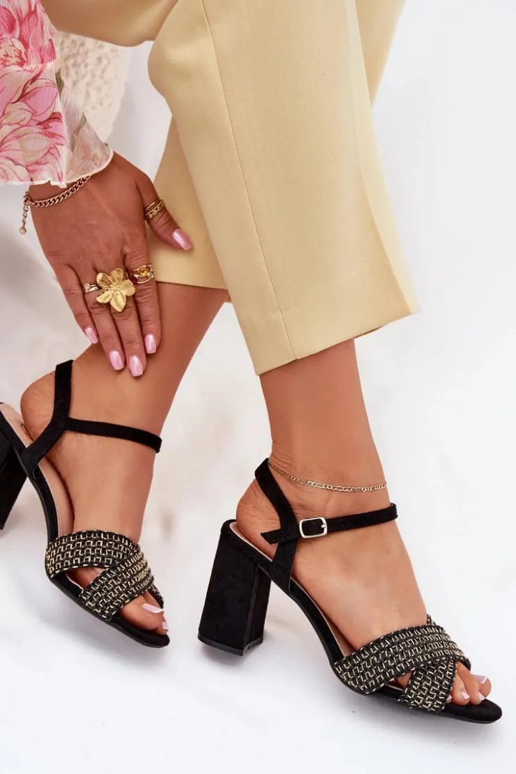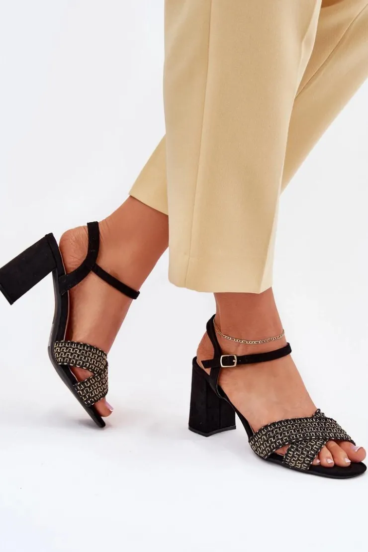 Sandały damskie wykonane z eko zamszu. Osadzone na słupkowym obcasie, który zapewnia stabilność i wygodę przez cały dzień. Zapinane na sprzączkę z regulowanym paskiem, pozwalają na idealne dopasowanie do stopy. Dwa przeplatające się paski z przodu przyciągają wzrok. Doskonałe do letnich sukienek, spódnic czy eleganckich spodni, stanowią idealne uzupełnienie kobiecych stylizacji na każdą okazję. Przy wyborze rozmiaru prosimy sugerować się tabelą rozmiarów.