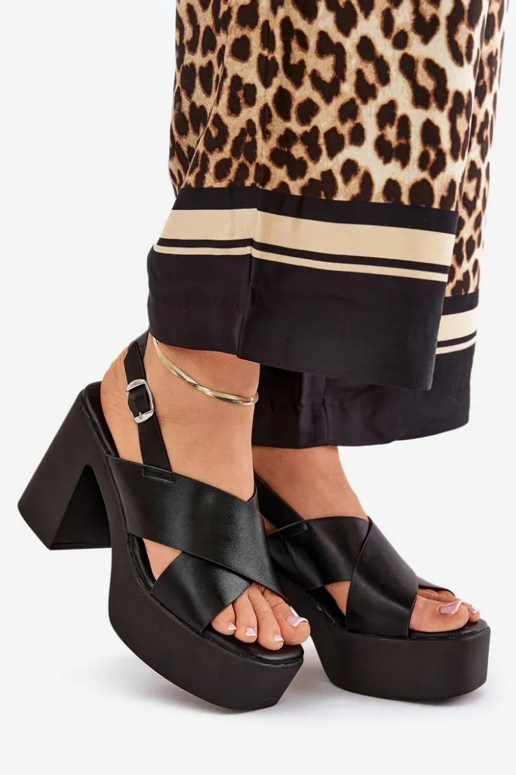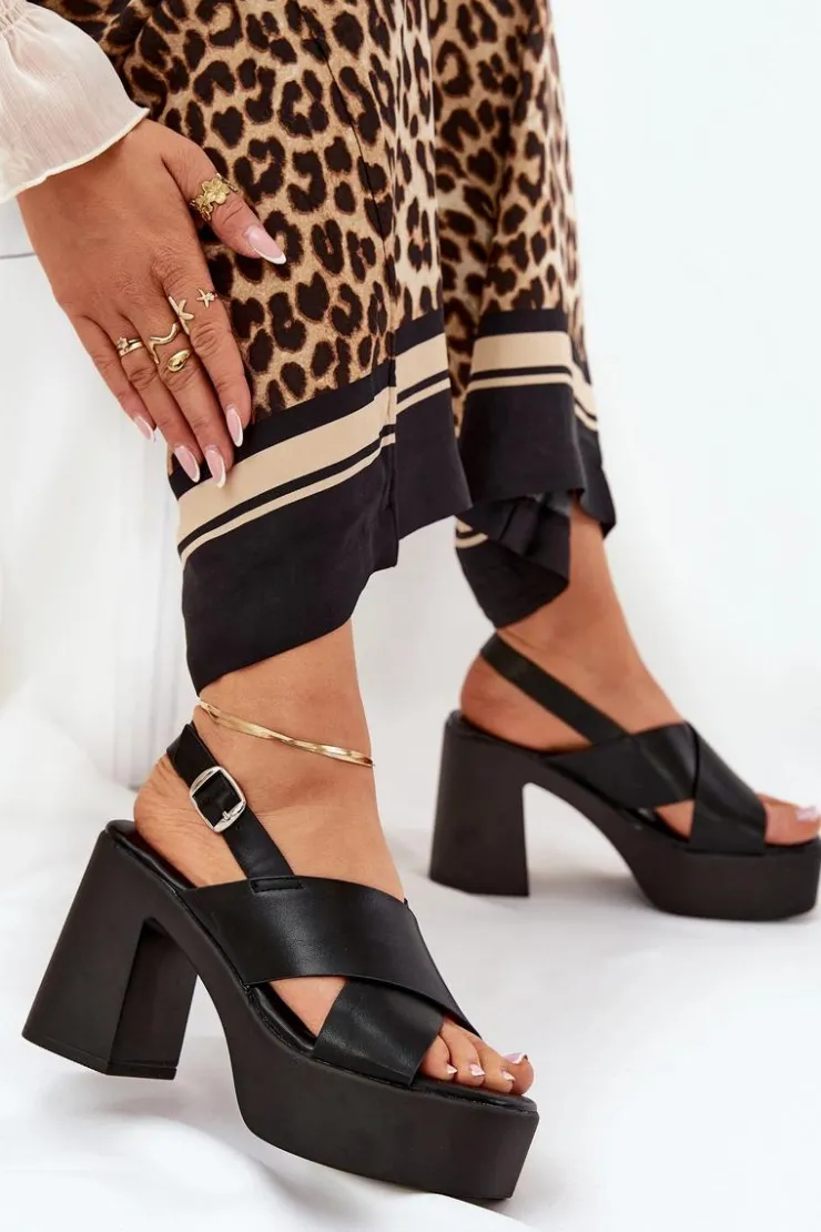 Lekkie sandały damskie z eko skóry, osadzone na masywnym słupku i platformie. Z przodu znajdują się dwa przeplatające się szerokie paski, które dodają modnego charakteru. Zapinane na sprzączkę, umożliwiają idealne dopasowanie do stopy. Miękka wkładka zapewnia komfort przez cały dzień. Idealne na letnie dni, te sandały będą doskonałym wyborem do różnych stylizacji, łącząc elegancję z funkcjonalnością. Przy wyborze rozmiaru prosimy sugerować się tabelą rozmiarów.