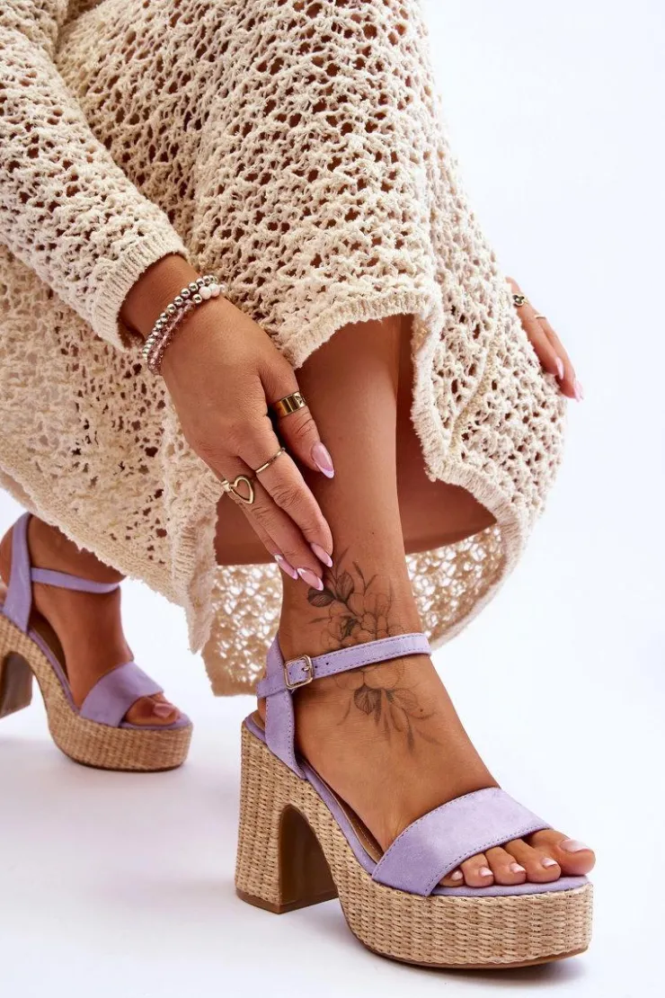 Świetne sandałki na masywnym obcasie w postaci słupka oraz platformie. Wykonane z przyjemnej w dotyku ekologicznej skóry. Sandałki posiadają odkryty, zaokrąglony nosek. Zapinane wokół kostki na regulowany pasek ze sprzączką. Ten model z pewnością sprawdzi się w wielu stylizacjach! Przy wyborze rozmiaru prosimy sugerować się tabelą rozmiarów.