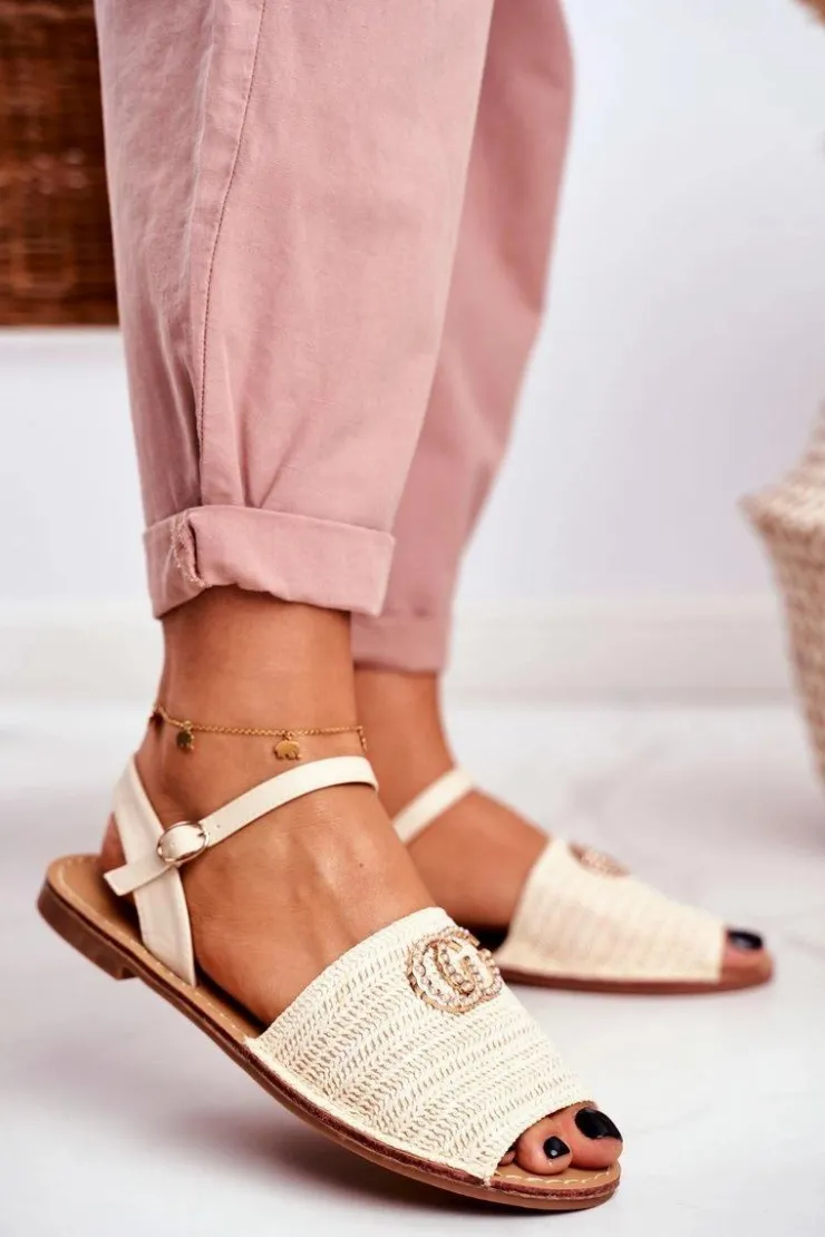 Boto Sandały Płaskie*Beżowe Damskie Płaskie Sandałki Lu Boo Plecione Felicia