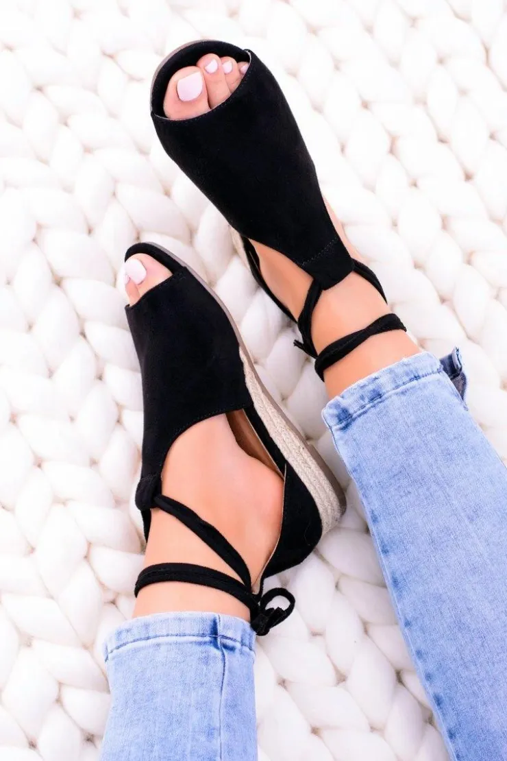 Boto Sandały Płaskie*Czarne Zamszowe Sandały na Lekkim koturnie Espanoso
