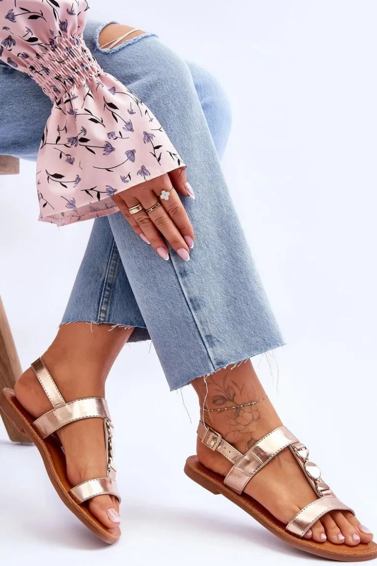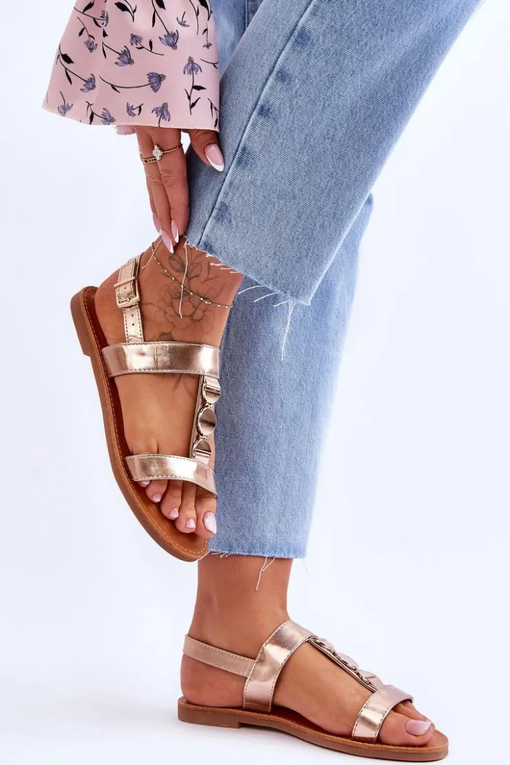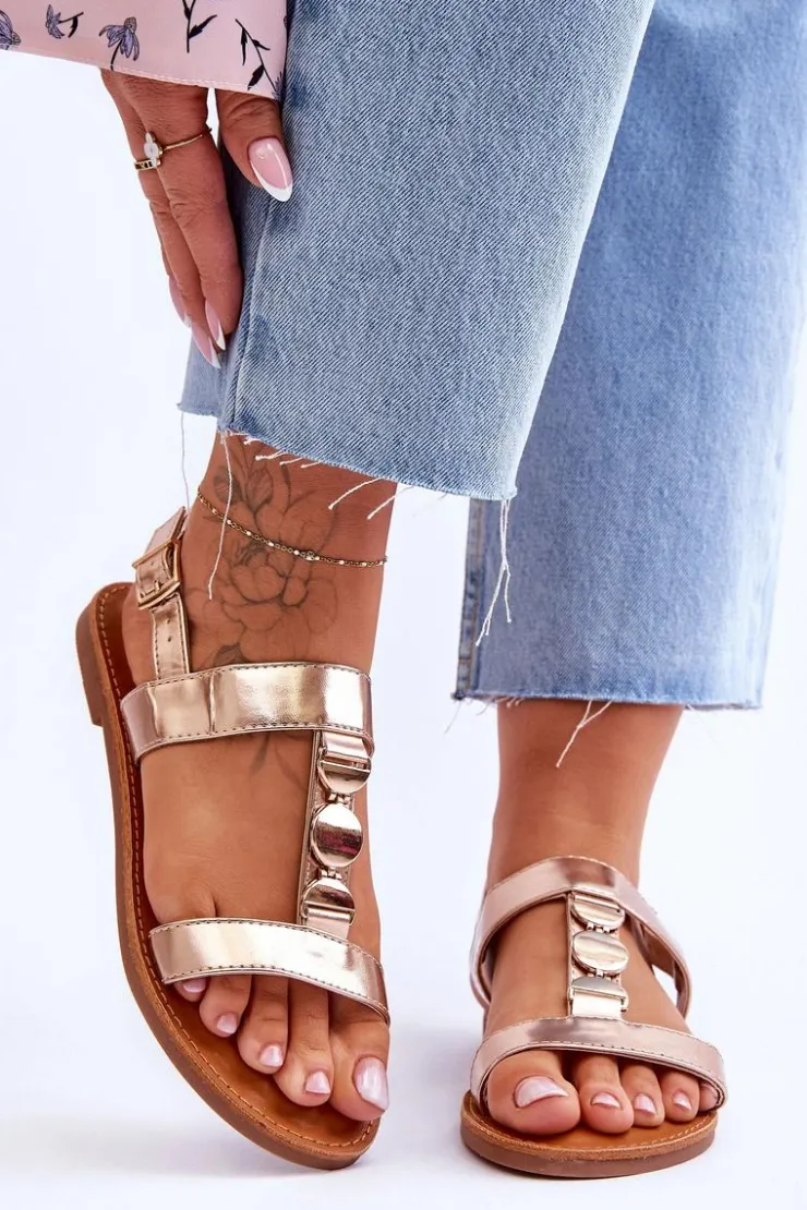 Damskie sandałki zostały wykonane z eko skóry. Model ten posiada zdobienie na paseczku w postaci kół. Sandałki są zapinane na regulowany pasek ze sprzączką. Wygodna wkładka z eko skóry zapewni komfort podczas użytkowania obuwia. Sandałki osadzono na płaskim obcasie z antypoślizgową podeszwą. Przy wyborze rozmiaru prosimy kierować się tabelą rozmiarów.