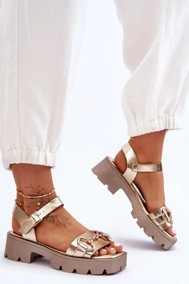 Wygodne sandały damskie zostały osadzone na płaskim obcasie oraz platformie. Wykonane z eko skóry z szerokim paskiem przytrzymującym stopę przed przesuwaniem się z ozdobą. Miękka wkładka pozwoli na komfortowe użytkowanie obuwia nawet przez cały dzień! Model ten jest zapinany wokół kostki na regulowany pasek ze sprzączką. Podeszwa wykonana z tworzywa sztucznego. Idealny model na letnie, upalne dni. Przy wyborze rozmiaru prosimy sugerować się tabelą rozmiarów.