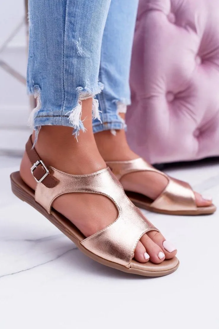 Boto Sandały Płaskie*Lekkie Złote Sandałki Kongito