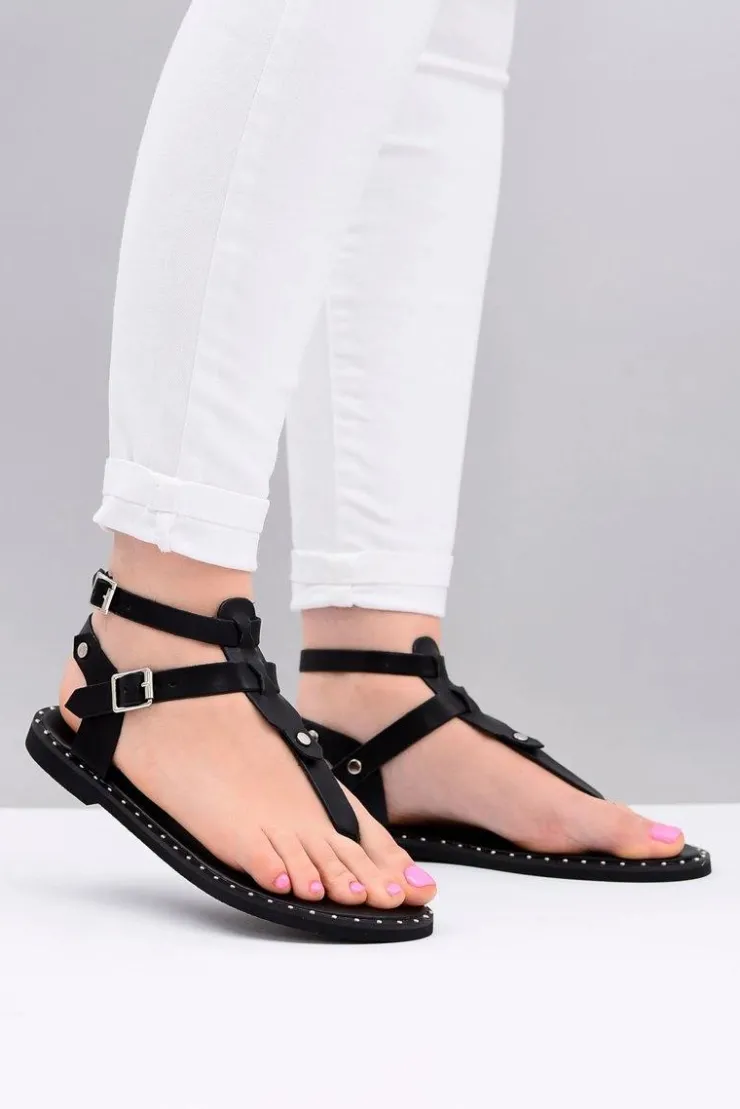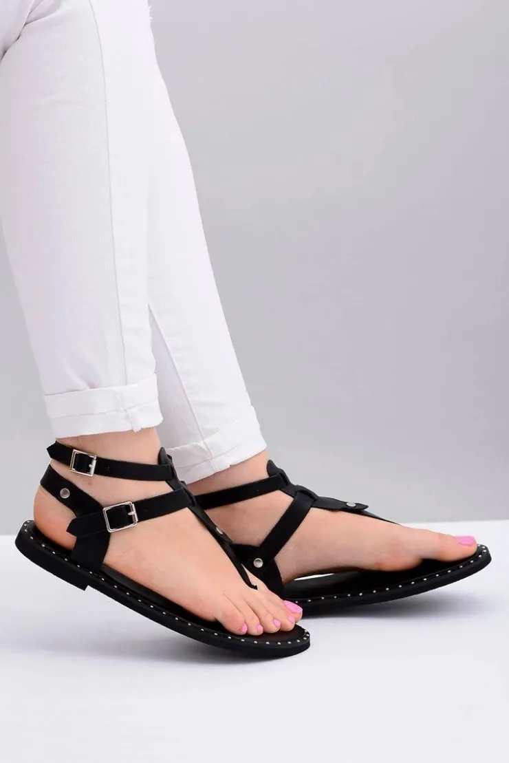 Boto Sandały Płaskie*Lu Boo | Damskie Sandałki Czarne Japonki Gladiatorki Achilla