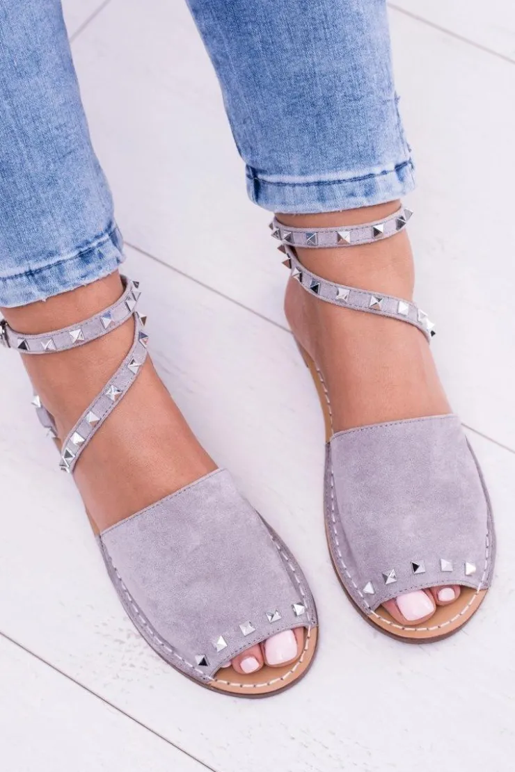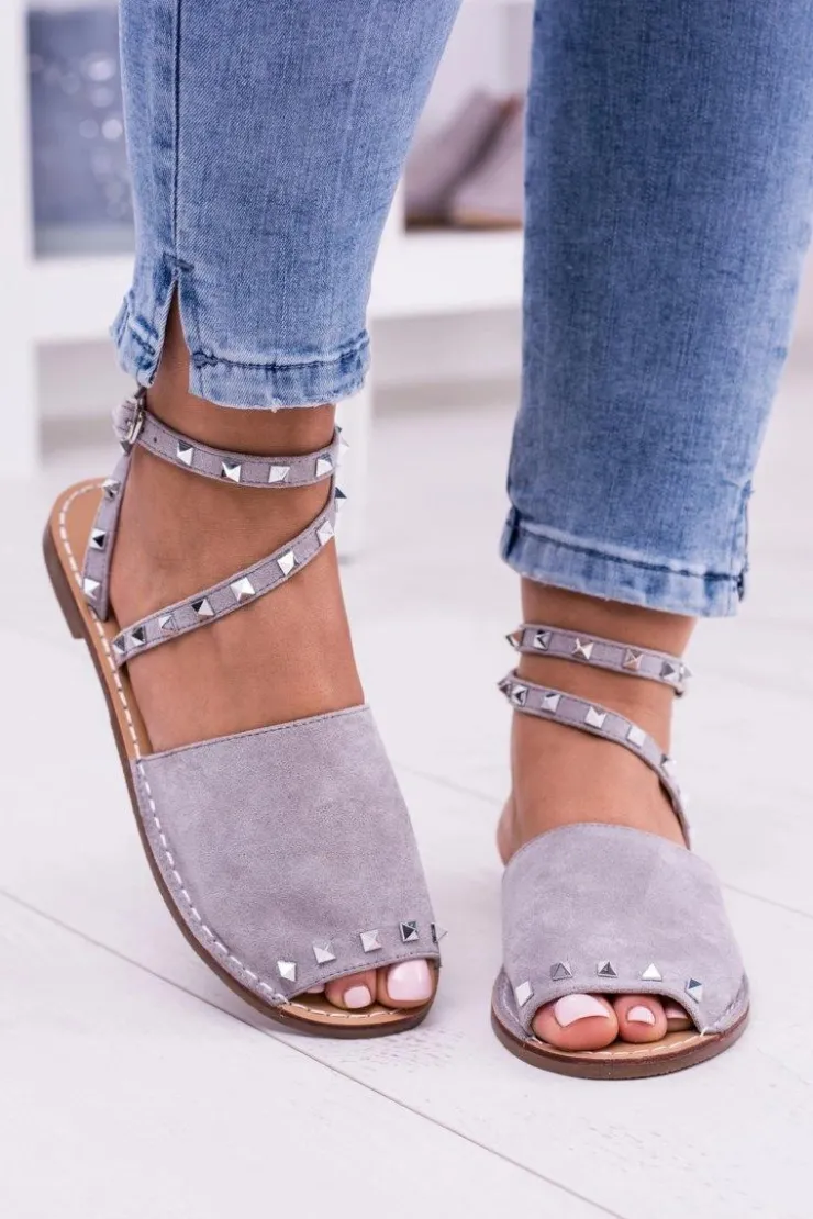 Boto Sandały Płaskie*Lu Boo Szare Stylowe Sandały Pari