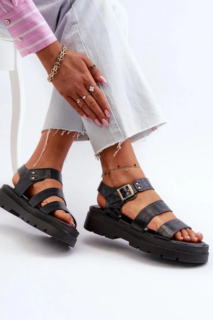 Modne sandały damskie na grubej podeszwie wykonane z eko skóry to idealny wybór na letnie dni. Zapinane na regulowany pasek ze sprzączką, gwarantują doskonałe dopasowanie do stopy. Dodatkowo ich designerski wygląd sprawia, że doskonale komponują się z różnymi stylizacjami, dodając im nuty nowoczesności i świeżości. Przy wyborze rozmiaru prosimy sugerować się tabelą rozmiarów.