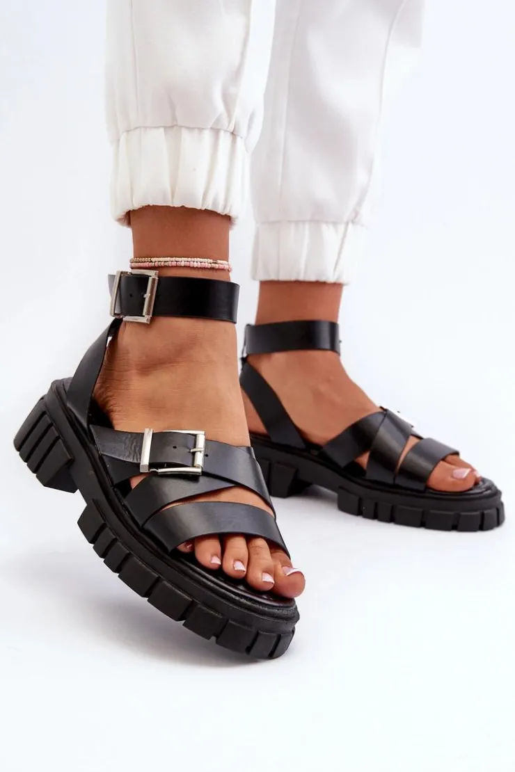 Sandały damskie wykonane z eko skóry. Osadzone na platformie i płaskim obcasie, zapewniają stabilność i wygodę podczas chodzenia. Zapinane na regulowany pasek ze sprzączką, gwarantują idealne dopasowanie do stopy. Dodatkowo miękka wkładka sprawia, że nawet długie spacery będą komfortowe i przyjemne. Idealne na letnie dni i wieczorne wyjścia! Przy wyborze rozmiaru prosimy kierować się tabelą rozmiarów.