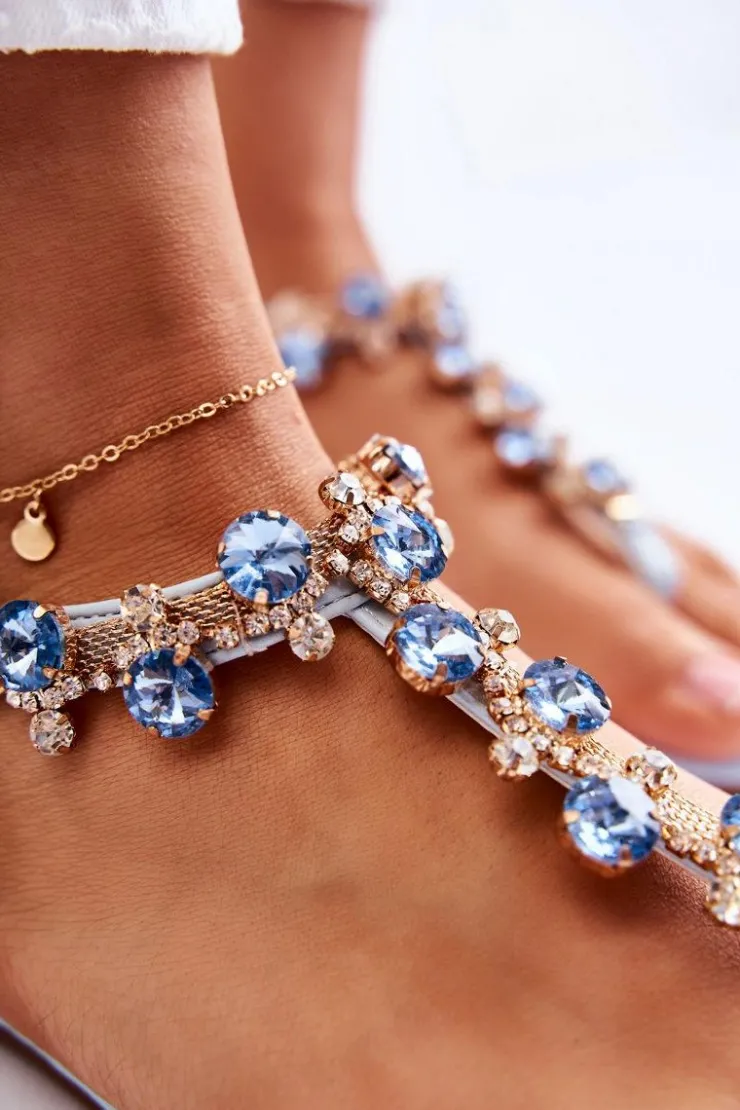 Wygodne sandały w stylu japonek świetnie prezentują się z letnimi stylizacjami. Buty te zostały wykonane z eko skóry. Wkładka jest dodatkowo pikowana. Na paseczkach znajdują się dżety w postaci kryształów oraz cyrkonii. Model zapinany na sprzączkę z regulowanym paskiem, dzięki któremu możesz je odpowiednio dopasować do tęgości nogi. Osadzone na płaskim obcasie z antypoślizgową podeszwą. Przy wyborze rozmiaru prosimy kierować się tabelą rozmiarów.