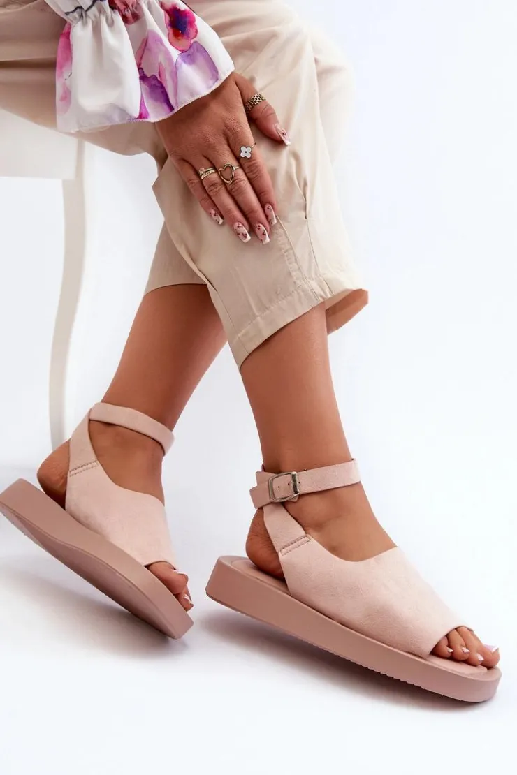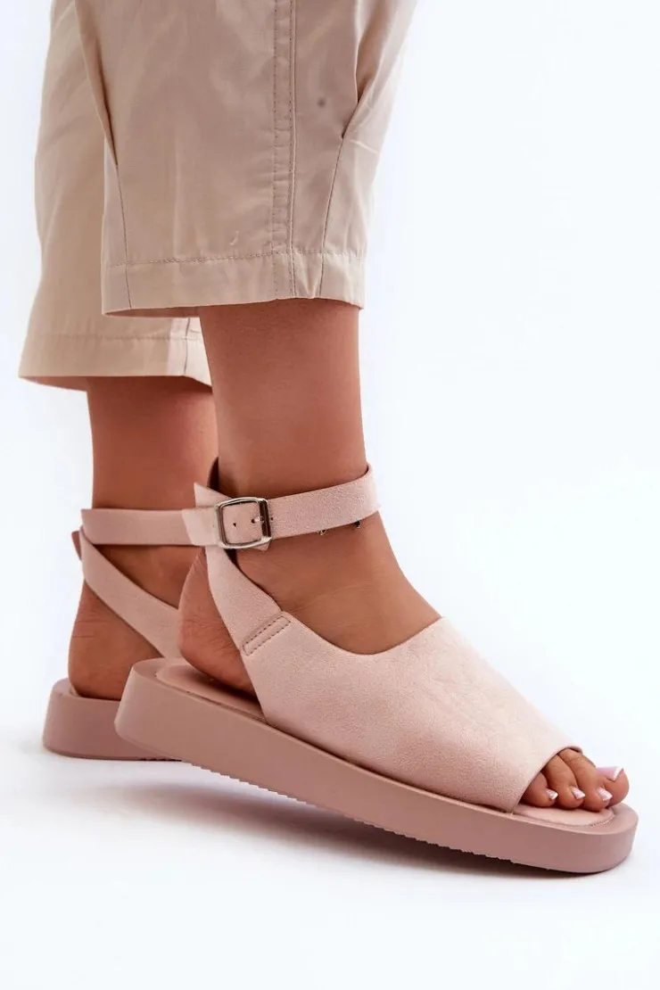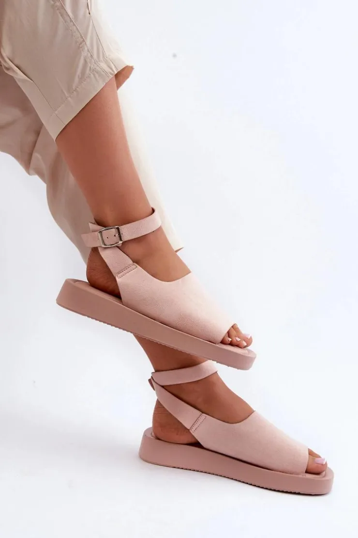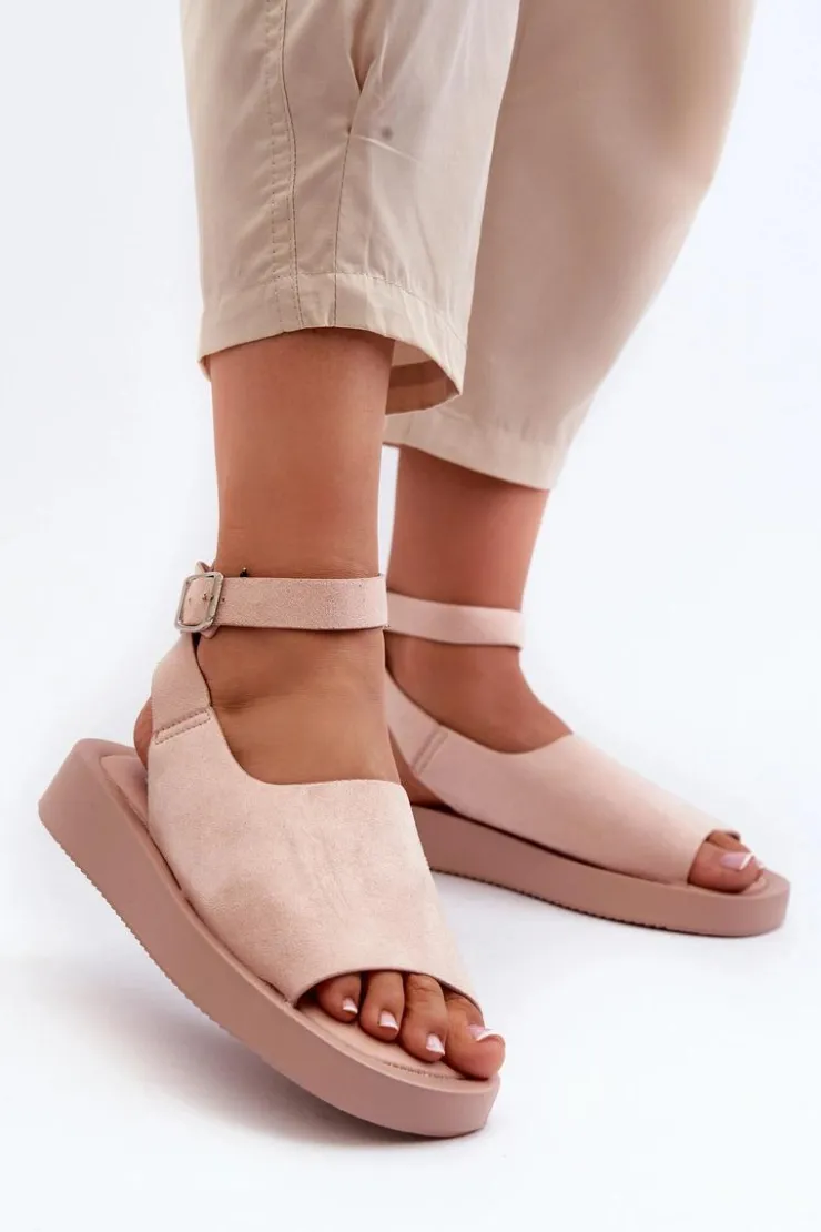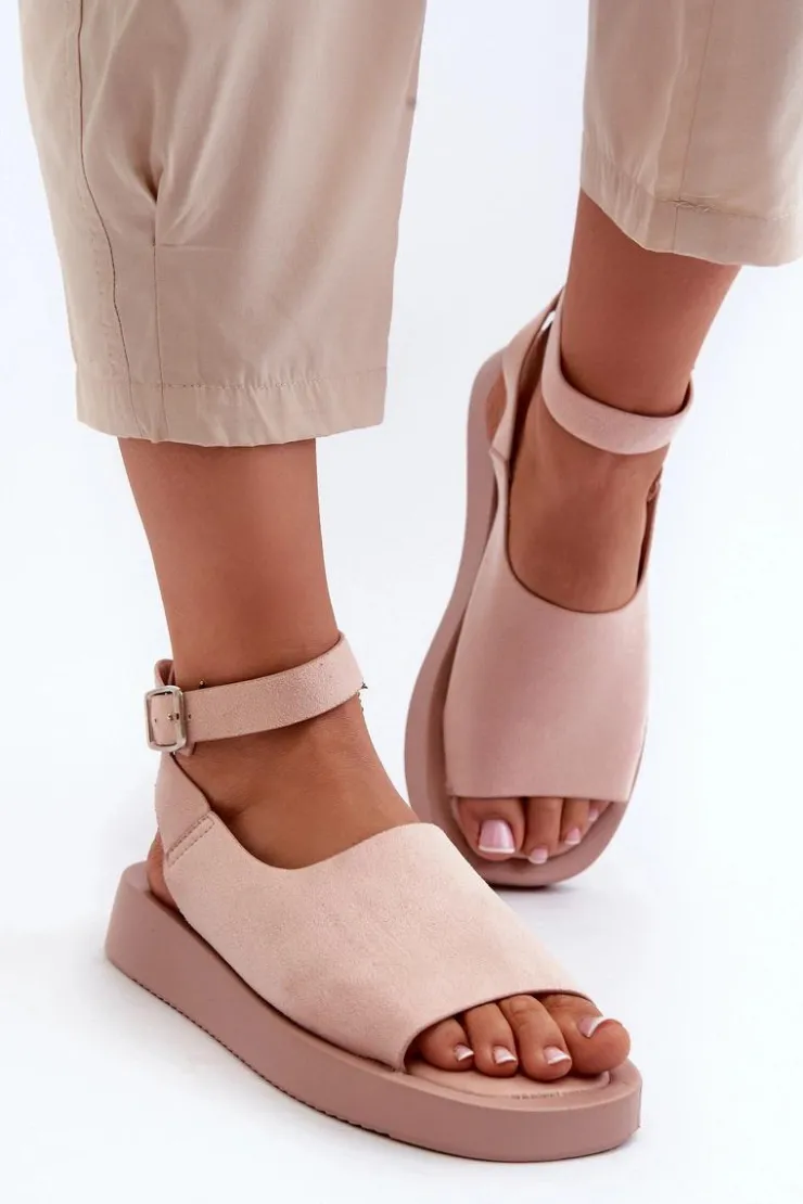 Wyjątkowe sandały damskie na platformie. Buty te zostały wykonane z miłego w dotyku eko zamszu. Posiadają miękką, eko skórzaną wkładkę. Sandałki są zapinane wokół kostki na regulowany pasek ze sprzączką. Ten niezwykły model z pewnością wzbogaci Twoją letnią garderobę! Przy wyborze rozmiaru prosimy sugerować się tabelą rozmiarów.