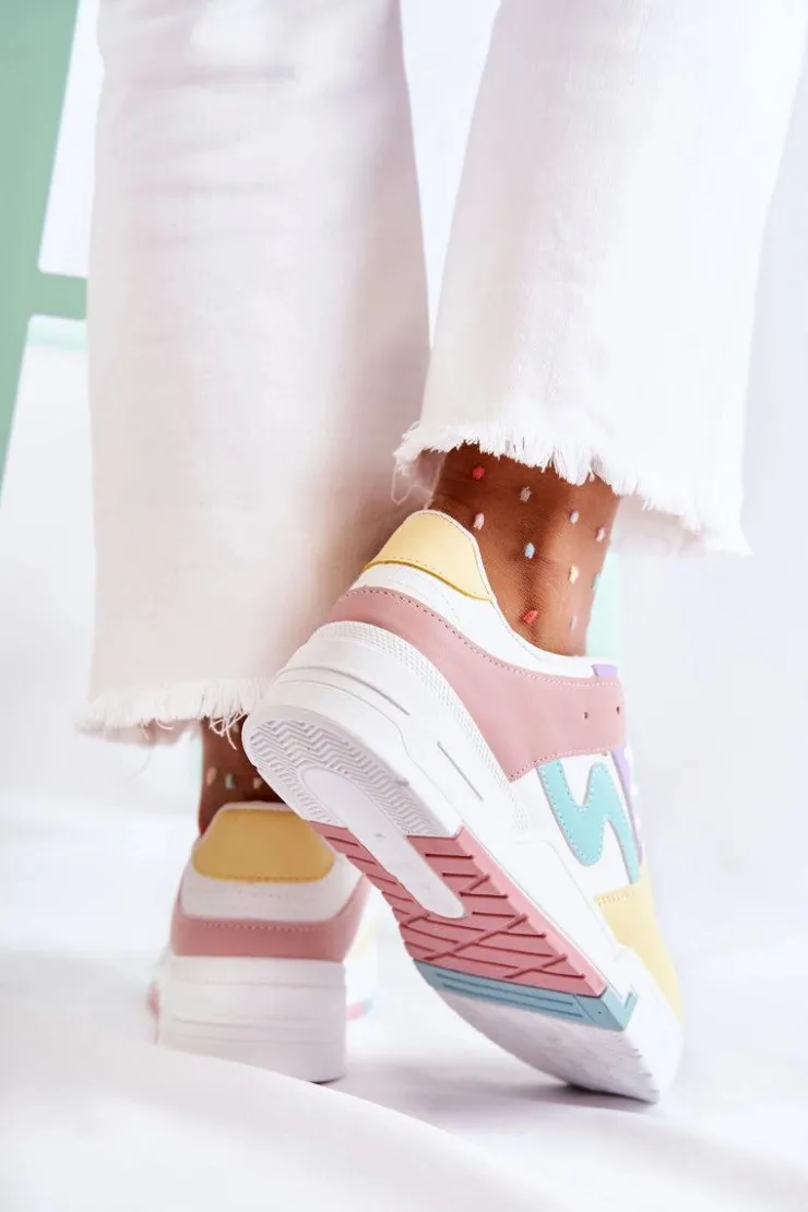 Buty sportowe, które koniecznie musisz mieć! Wykonane z eko skóry. Osadzone na masywnej platformie z wypustkami po bokach. Na przodzie znajduje się delikatna perforacja. Sneakersy posiadają wiązanie na płaskie sznurowadła, dzięki któremu można je idealnie dopasować. Miękka wkładka została wykonana z materiału i jest dodatkowo wyciągana. Model ten świetnie sprawdzi się na co dzień. Przy wyborze rozmiaru prosimy kierować tabelą rozmiarów.