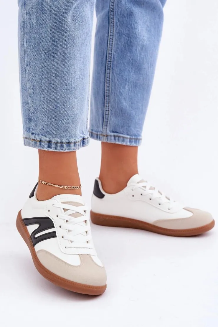 Sneakersy damskie z niską cholewką wykonane z eko skóry oferują wygodę i styl na co dzień. Klasyczne sznurowanie umożliwia idealne dopasowanie, a zaokrąglone noski dodają uniwersalnego wyglądu. Wkładka z miękkiej pianki zapewnia komfort przez cały dzień. Doskonałe do casualowych zestawień! Przy wyborze rozmiaru prosimy kierować tabelą rozmiarów.