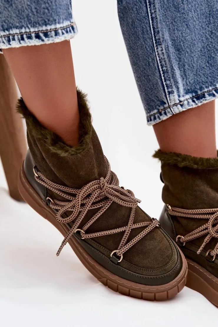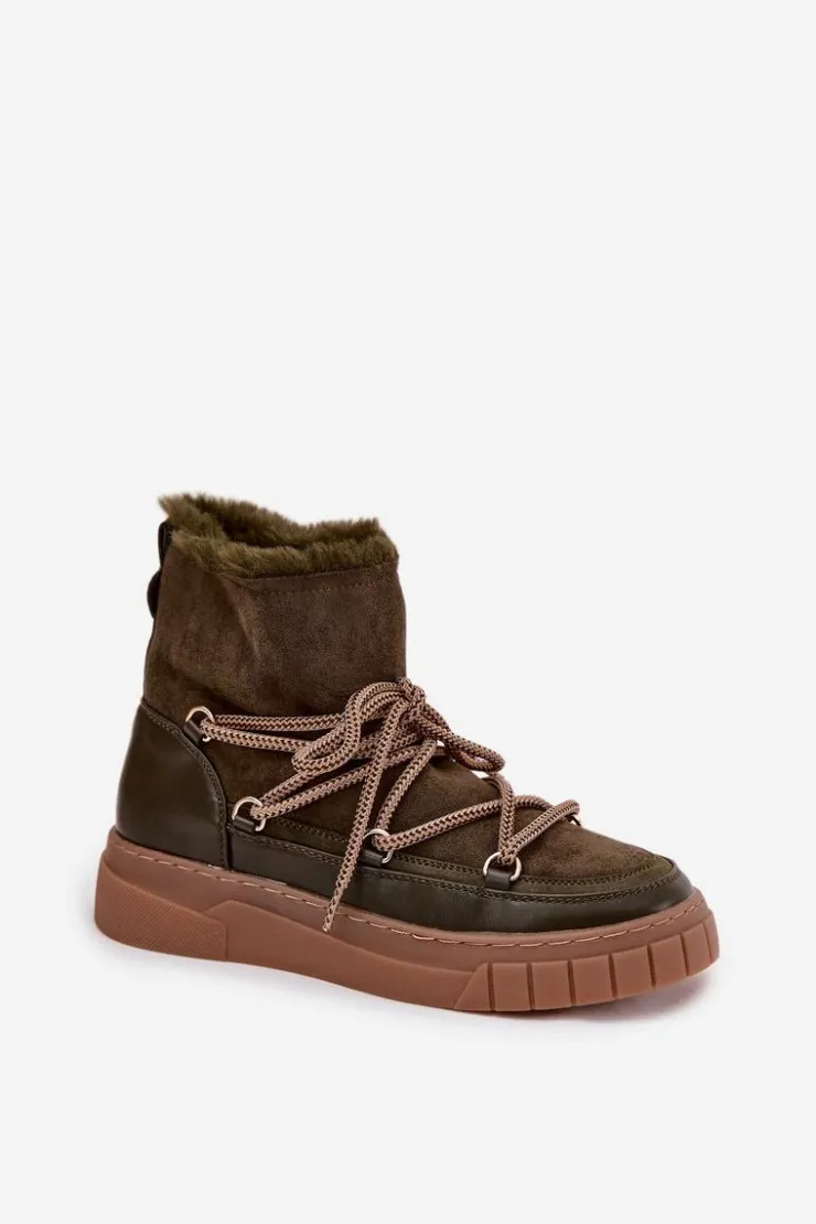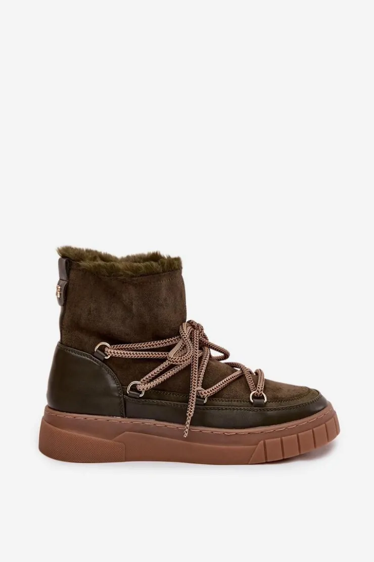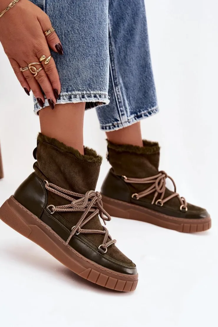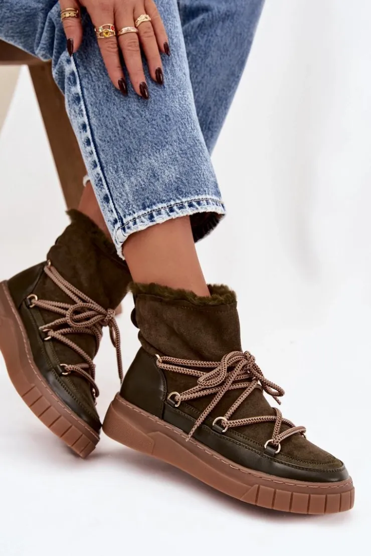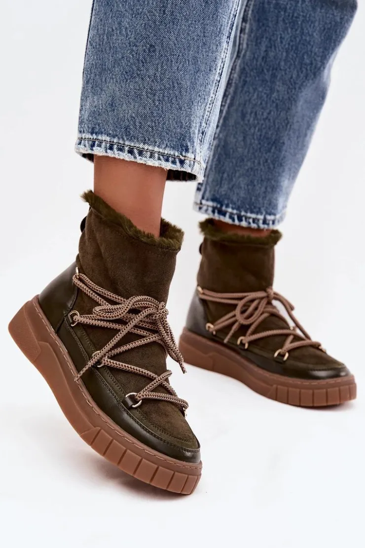 Boto Śniegowce Damskie Z Wiązaniem Ciemnozielone Isalisse Zielony