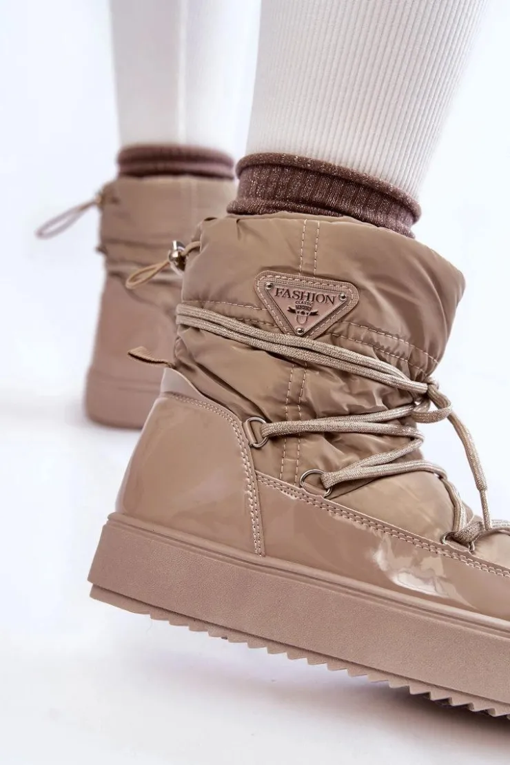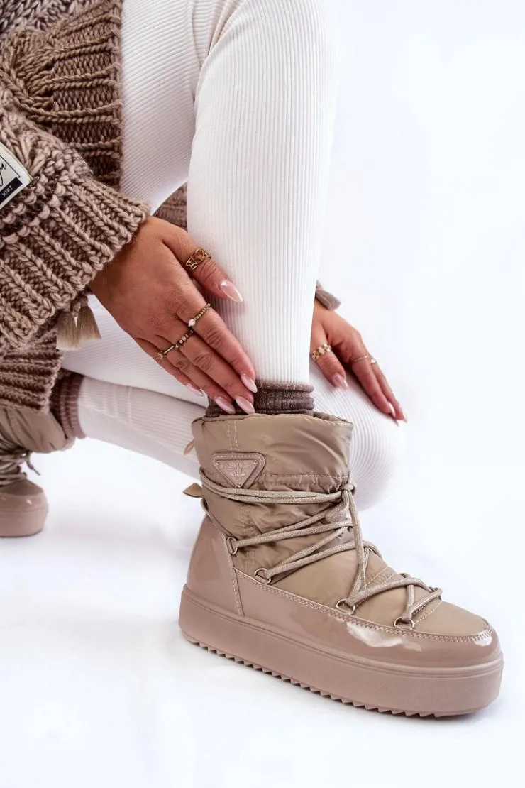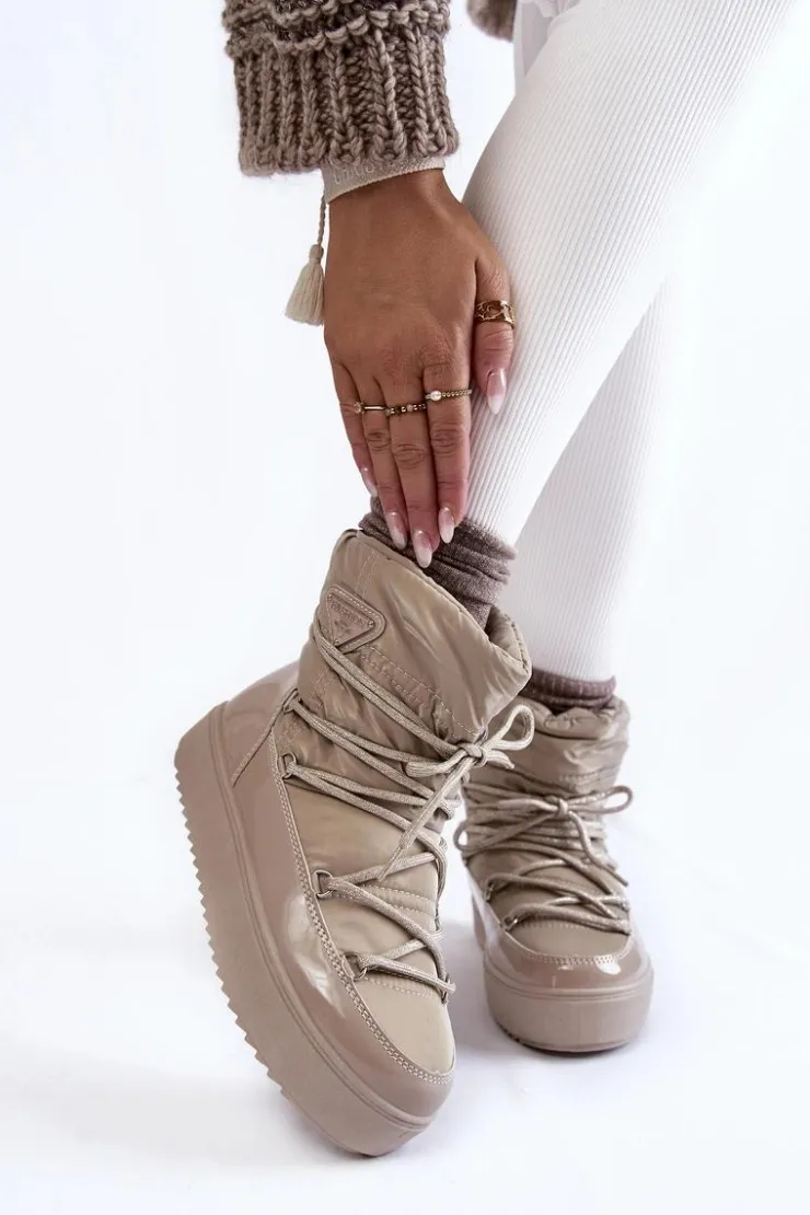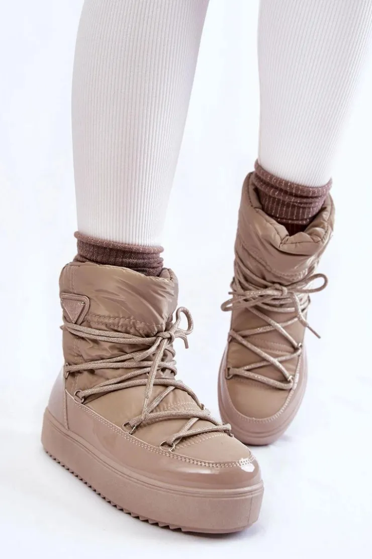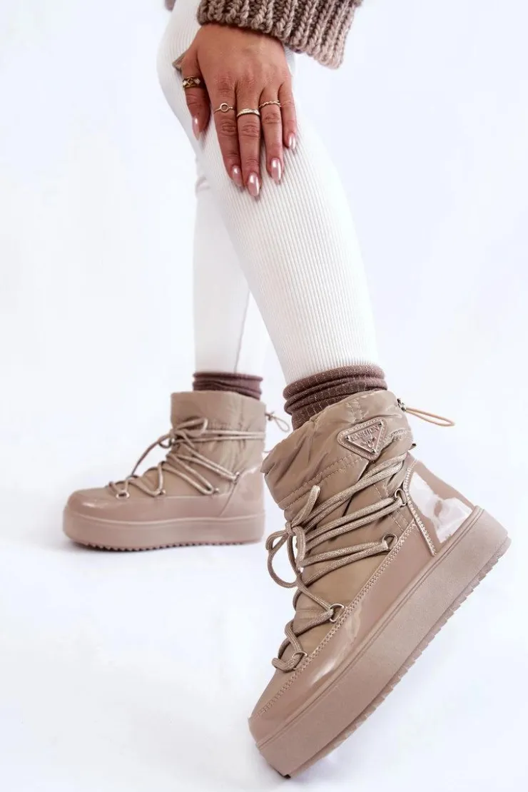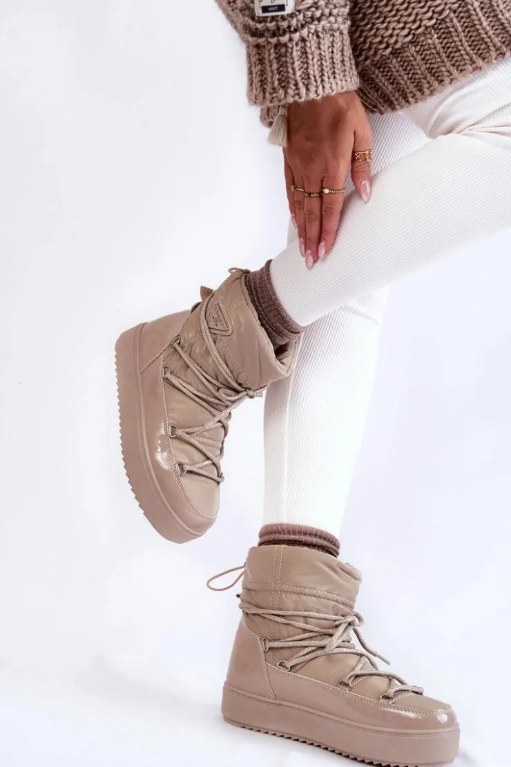 Boto Śniegowce Damskie*Damskie Modne Śniegowce Sznurowane Beżowe Carrios