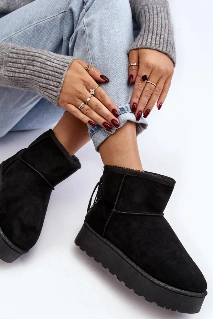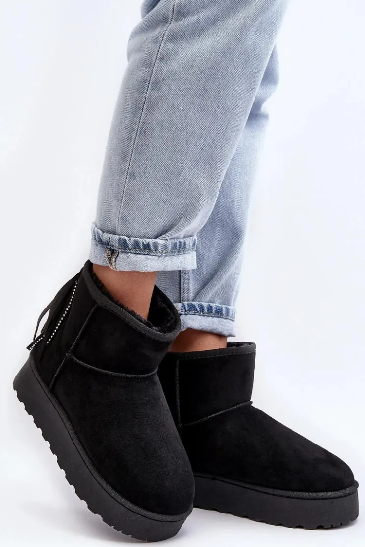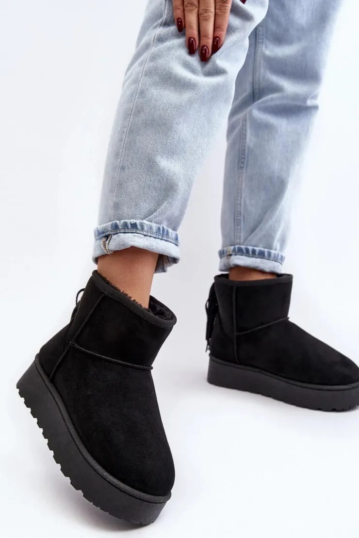 Damskie śniegowce wykonane z eko zamszu. Osadzone na masywnej podeszwie z gumowego tworzywa. Cholewka za kostkę ozdobiona frędzlami z tyłu. Środek ocieplony grubym futerkiem. Model ten występuje również w rozmiarówce dziecięcej. Stwórz komplet mama + dziecko! Przy wyborze rozmiaru prosimy sugerować się tabelą rozmiarów.