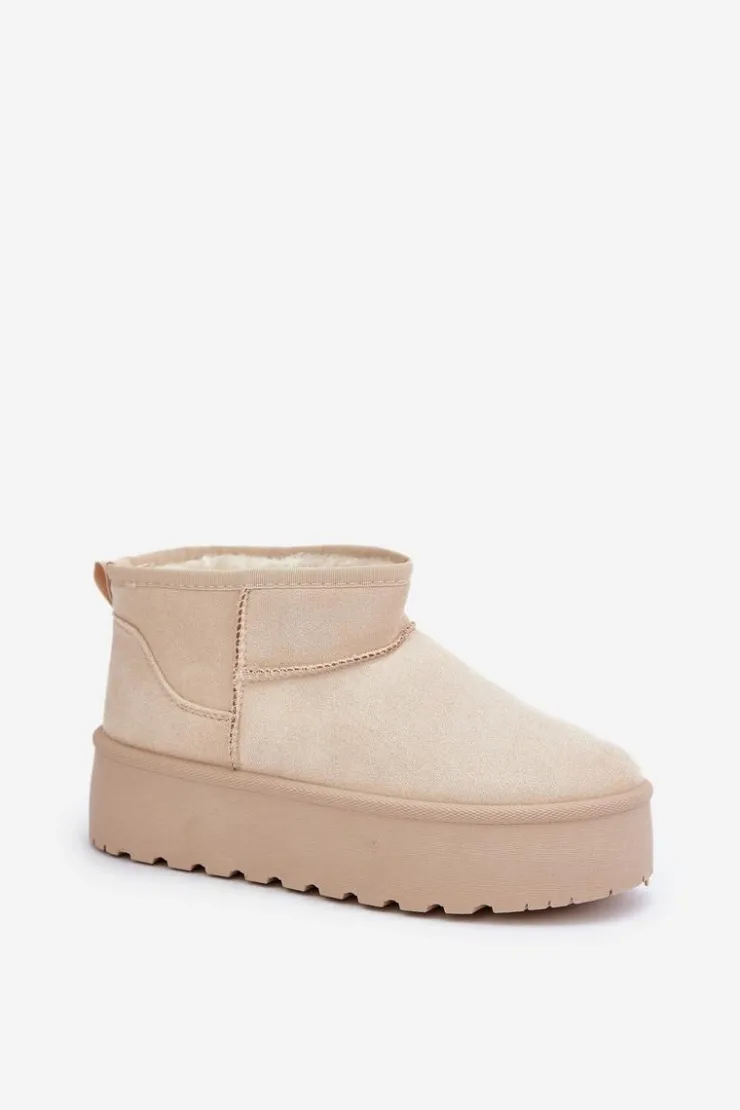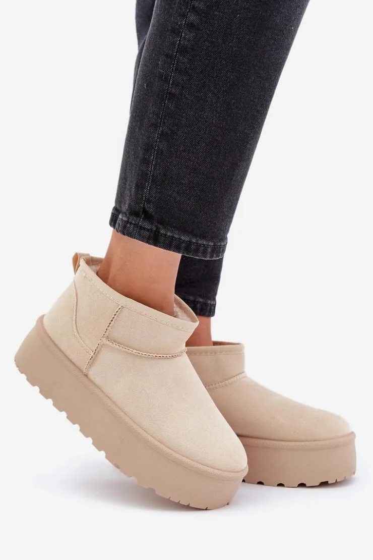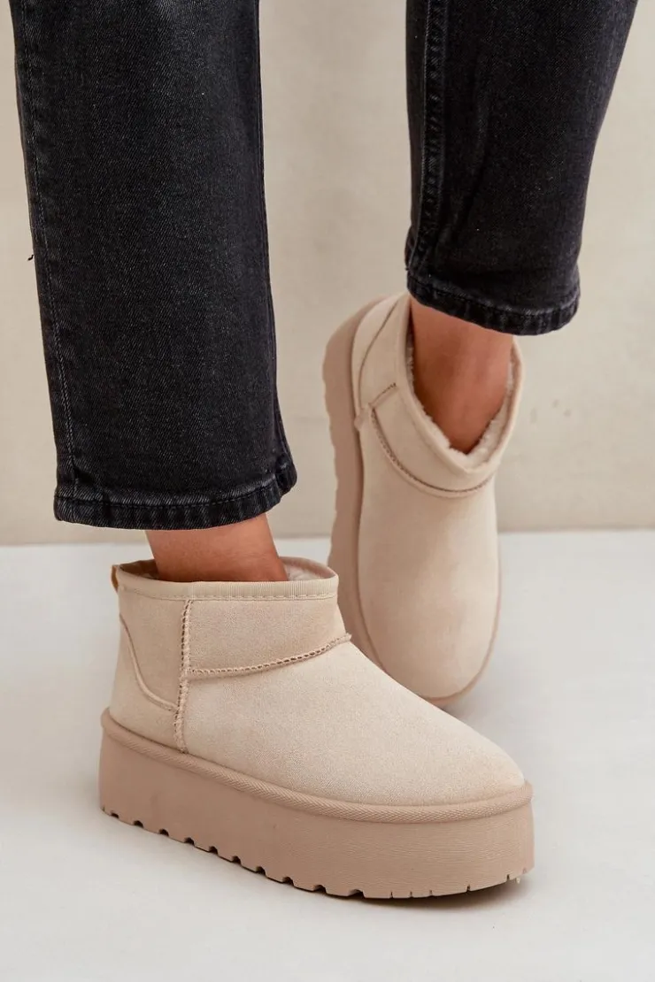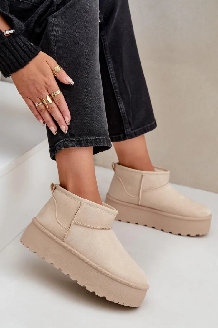 Damskie śniegowce wykonane z eko zamszu. Osadzone na masywnej platformie z gumowego tworzywa. Cholewka do kostki. Środek ocieplony futerkiem. Ten modny model będzie idealny do niemalże każdej jesienno-zimowej stylizacji! Koniecznie powinnaś je mieć! Przy wyborze rozmiaru prosimy sugerować się tabelą rozmiarów.