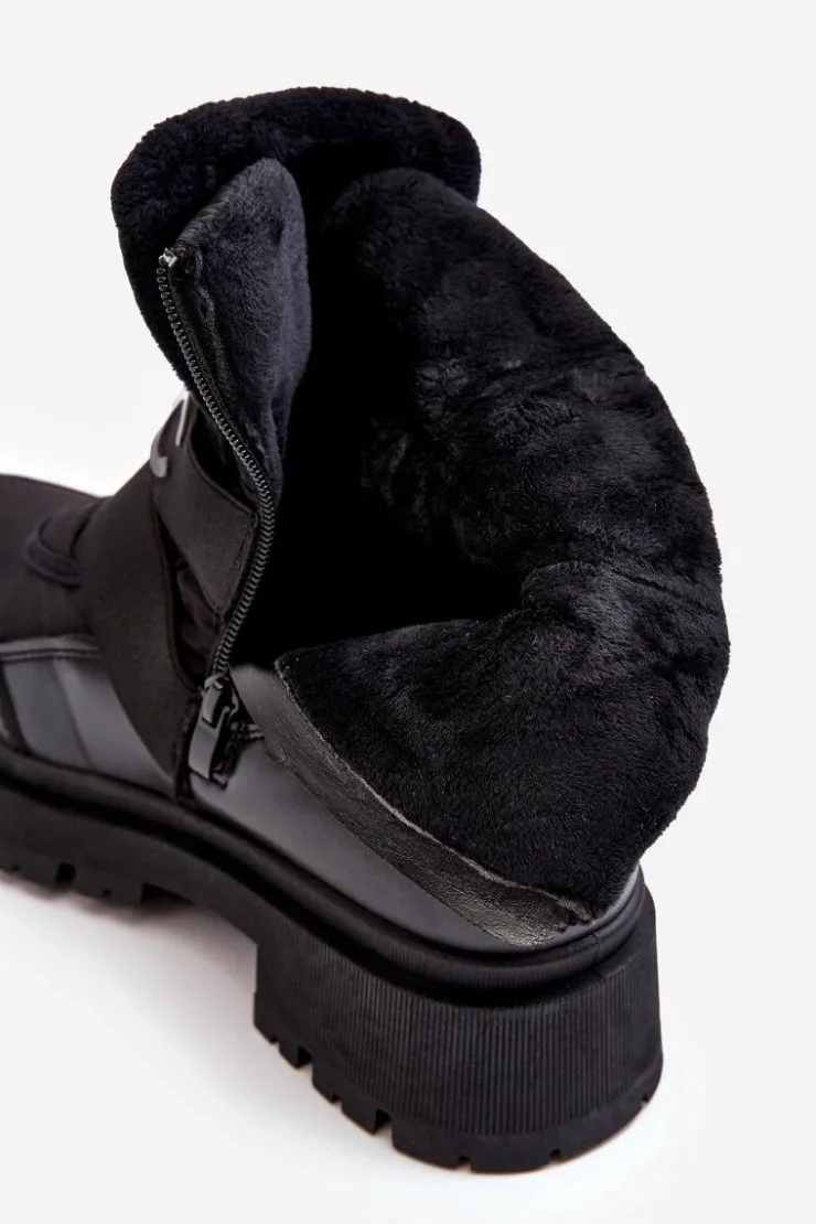 Damskie śniegowce zostały wykonane z połączenia eko skóry i materiału tekstylnego. Osadzone na płaskim obcasie i platformie. Model ten zapinany na suwak z boku. Środek ocieplony grubym kocem obuwniczym. Dwa elastyczne paski z przodu. Noski zaokrąglone. Usztywniony zapiętek. Sprawdź naszą pozostałą ofertę śniegowców! Nie czekaj kup już dziś! Przy wyborze rozmiaru, prosimy sugerować się tabelą rozmiarów.