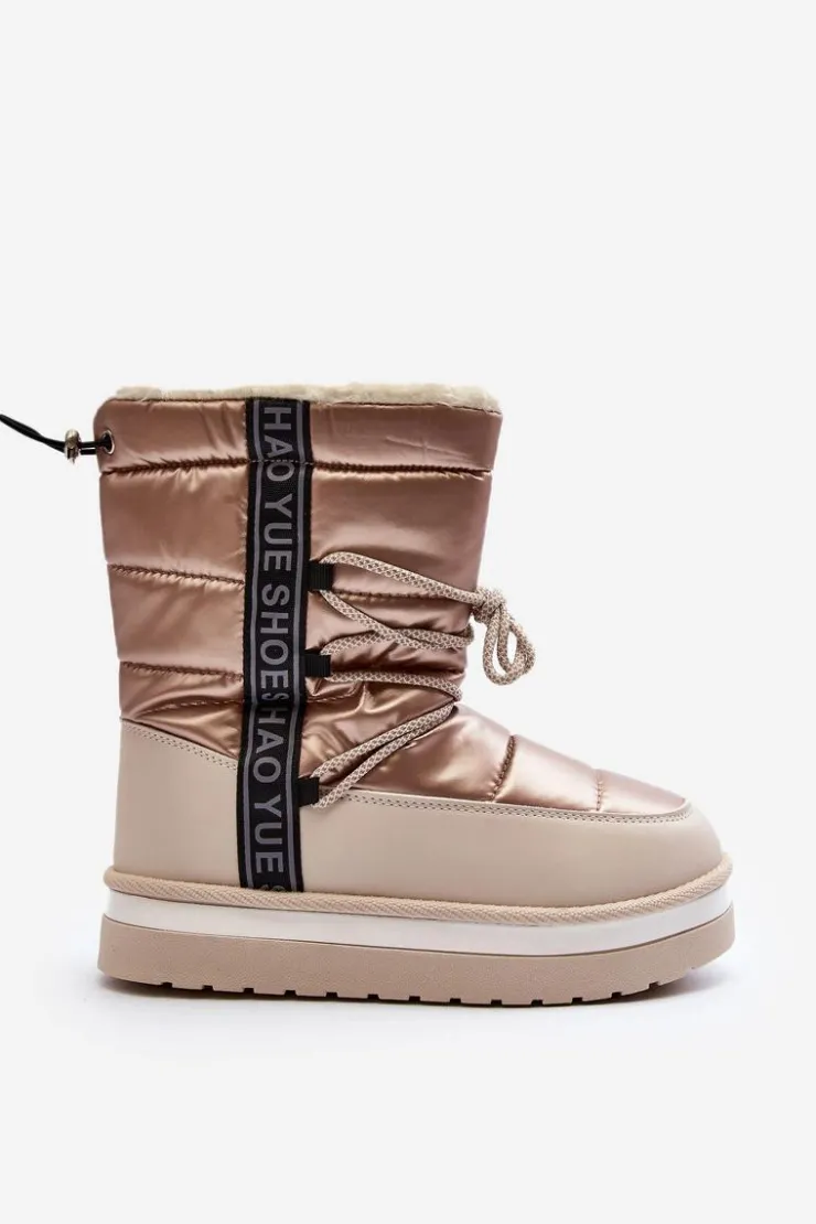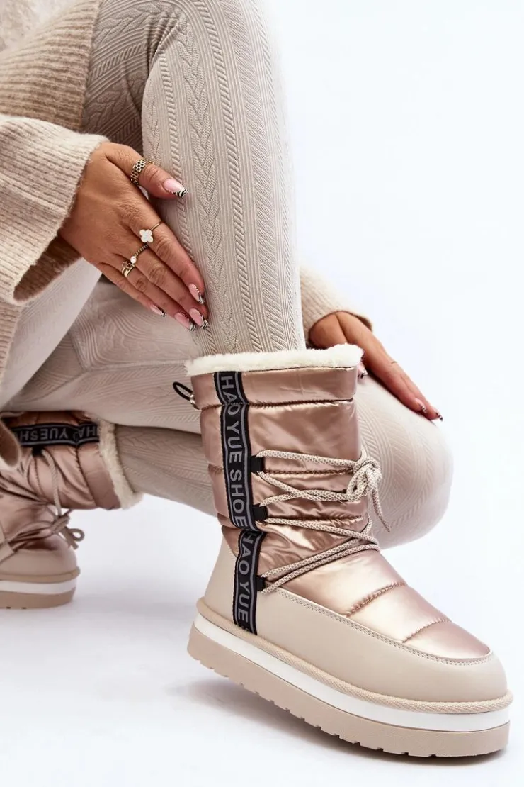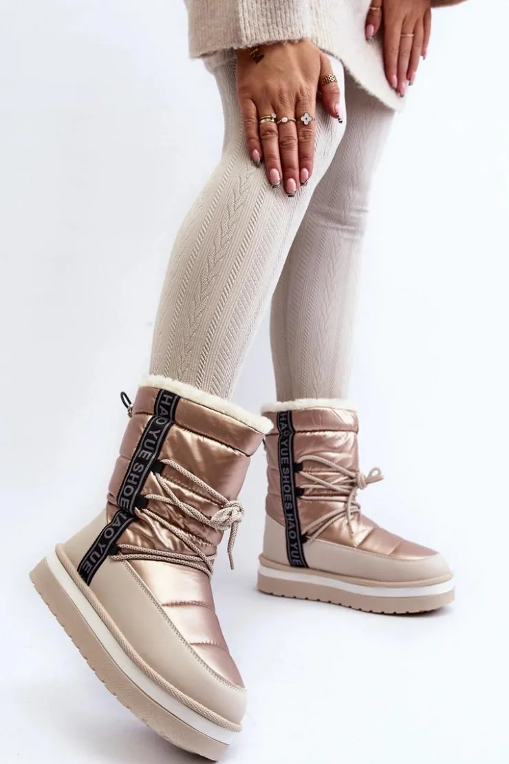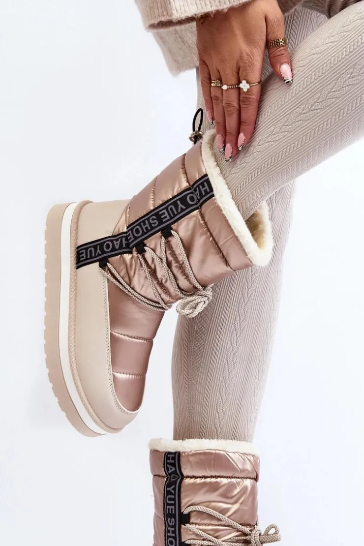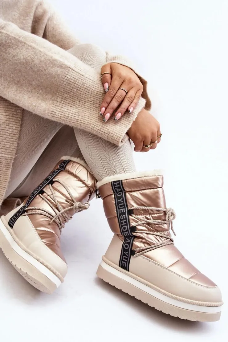 Boto Śniegowce Damskie*Damskie Śniegowce Z Wiązaniem Beżowe Lilara