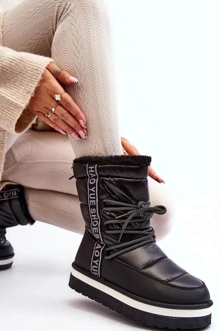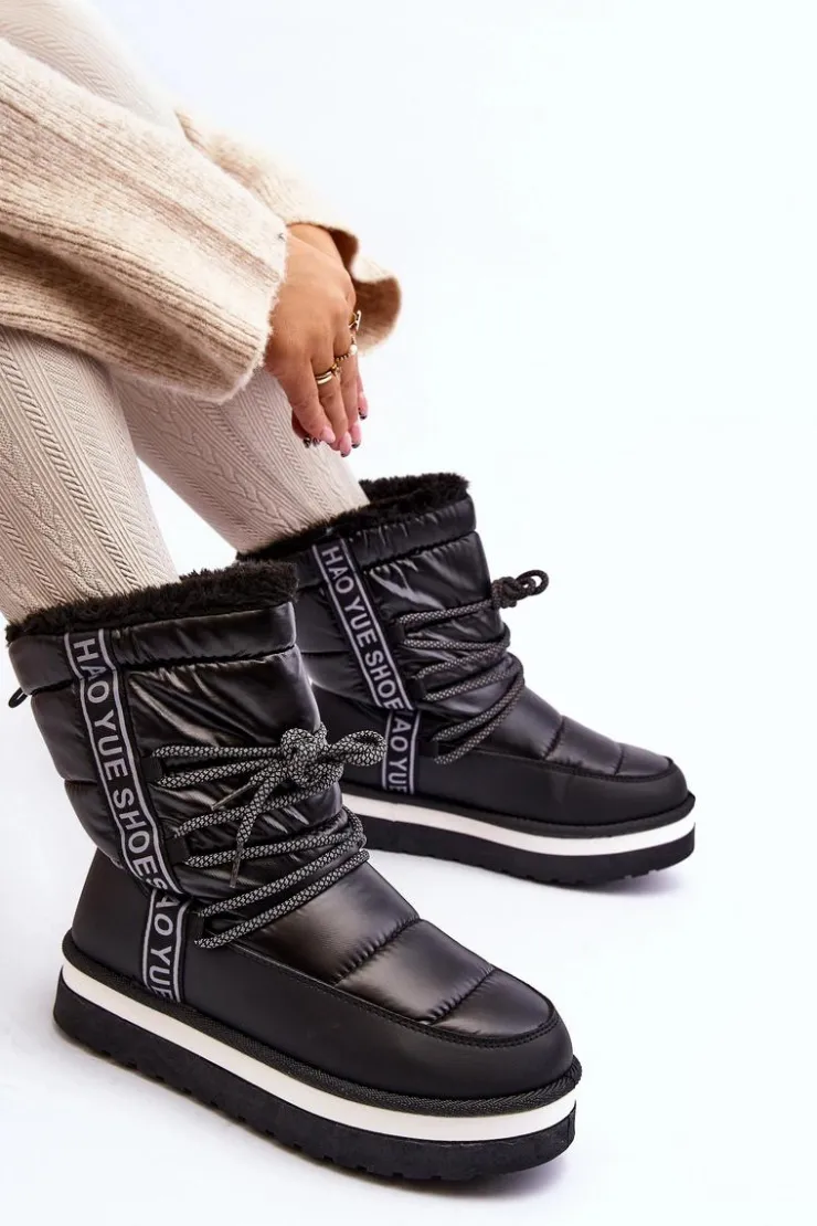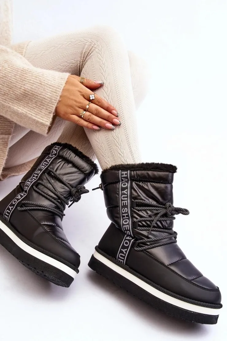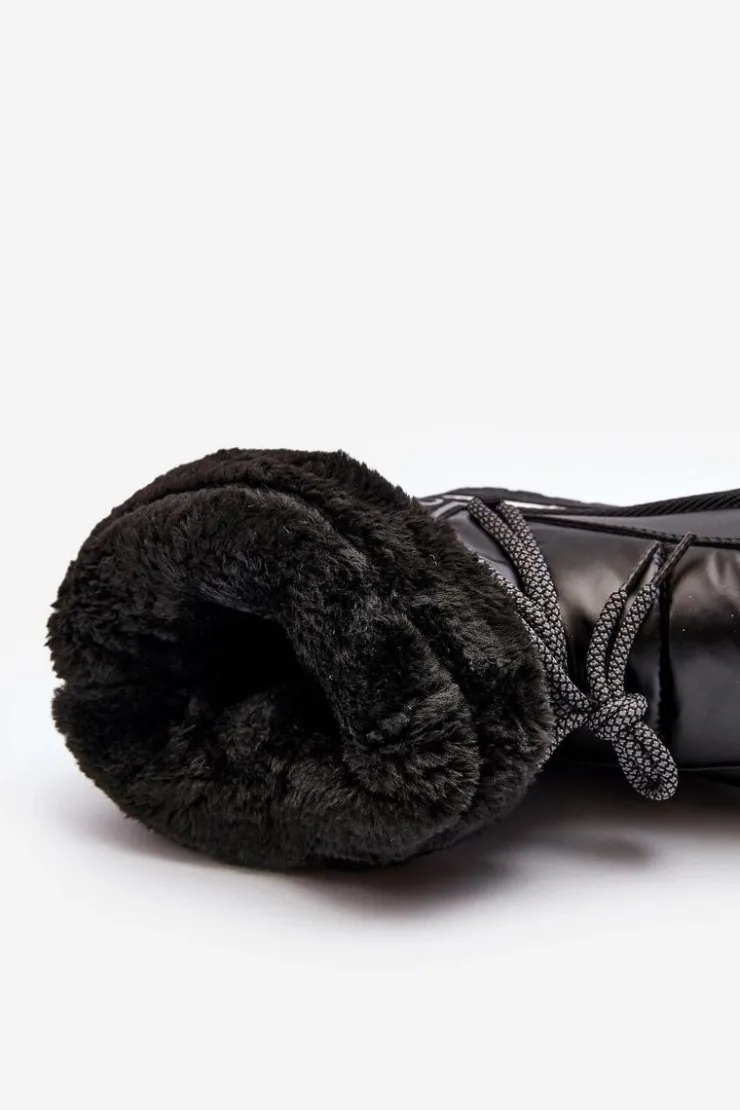 Boto Śniegowce Damskie*Damskie Śniegowce Z Wiązaniem Czarne Lilara