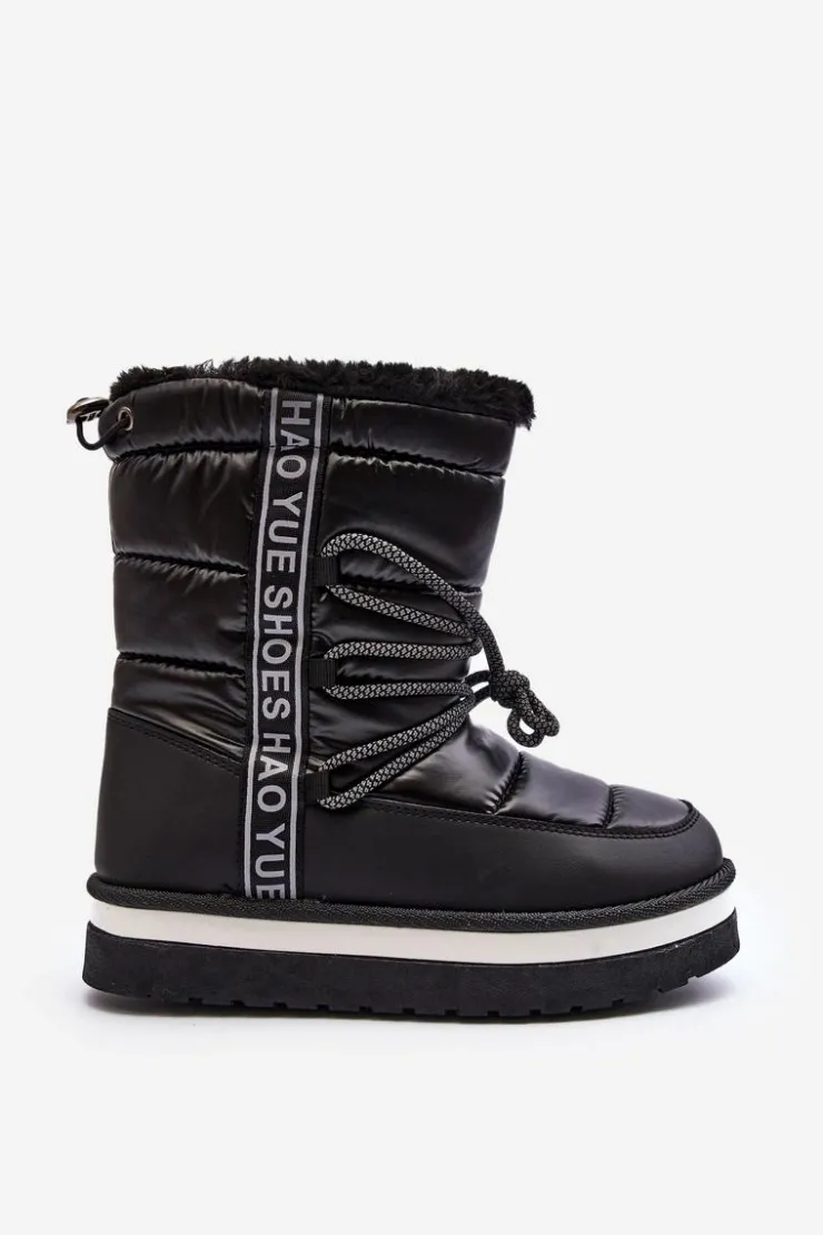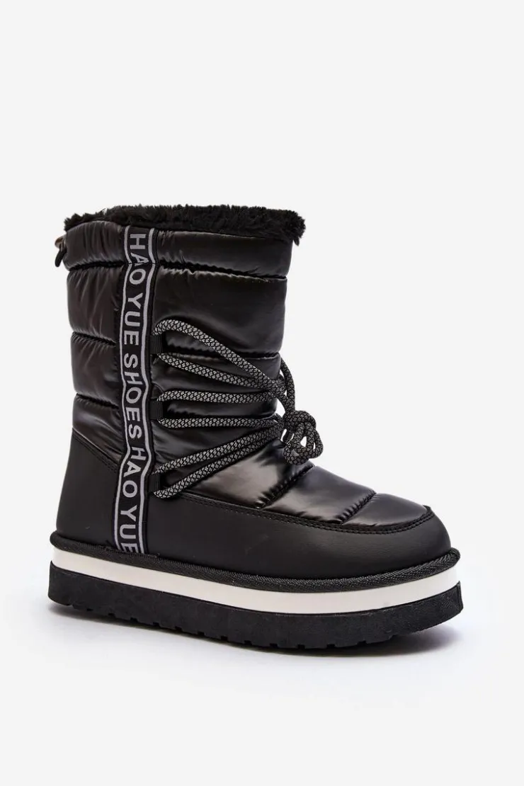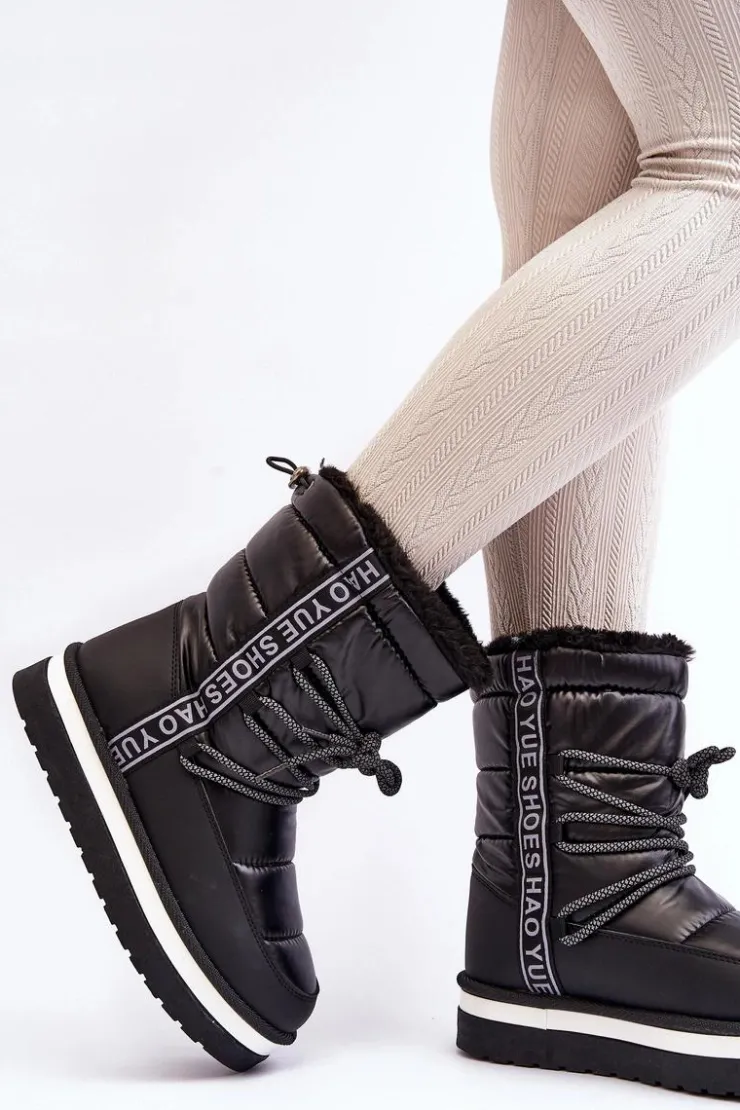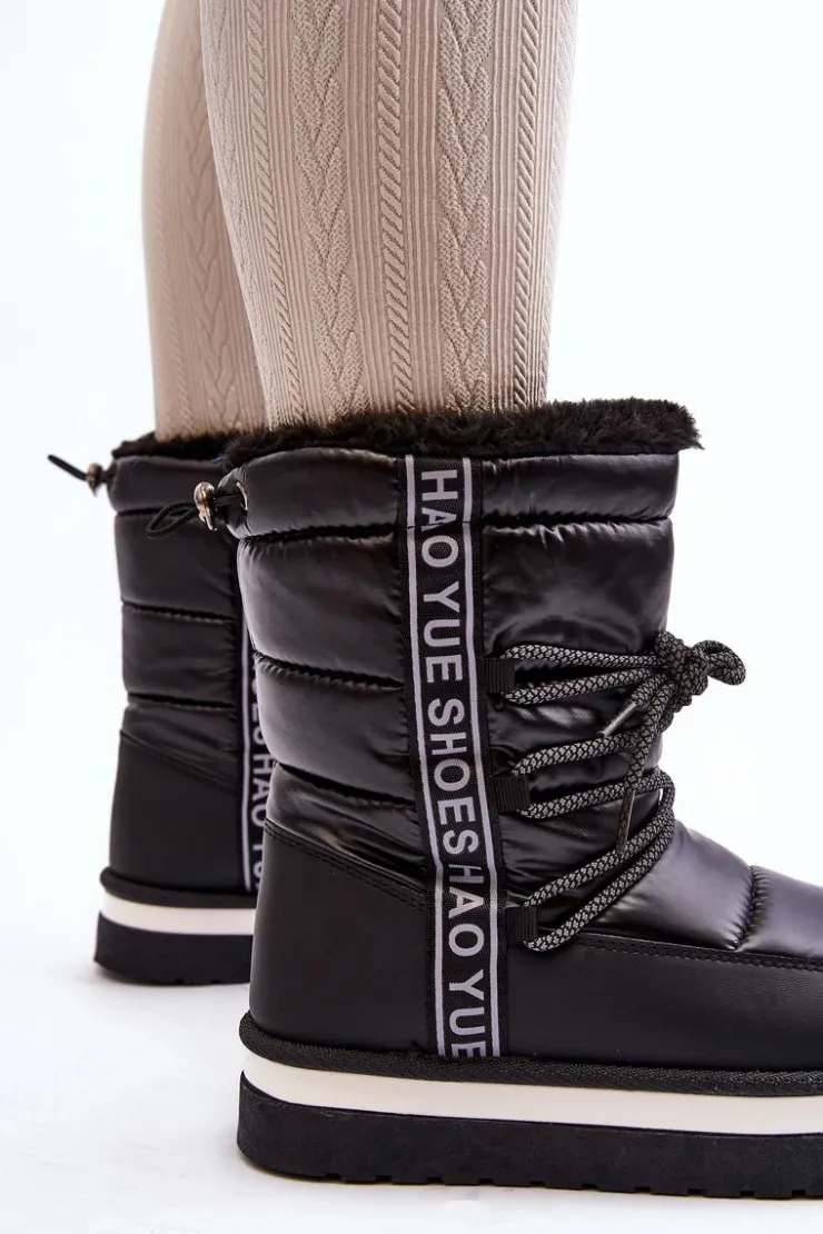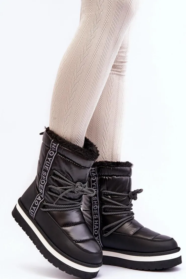Boto Śniegowce Damskie*Damskie Śniegowce Z Wiązaniem Czarne Lilara