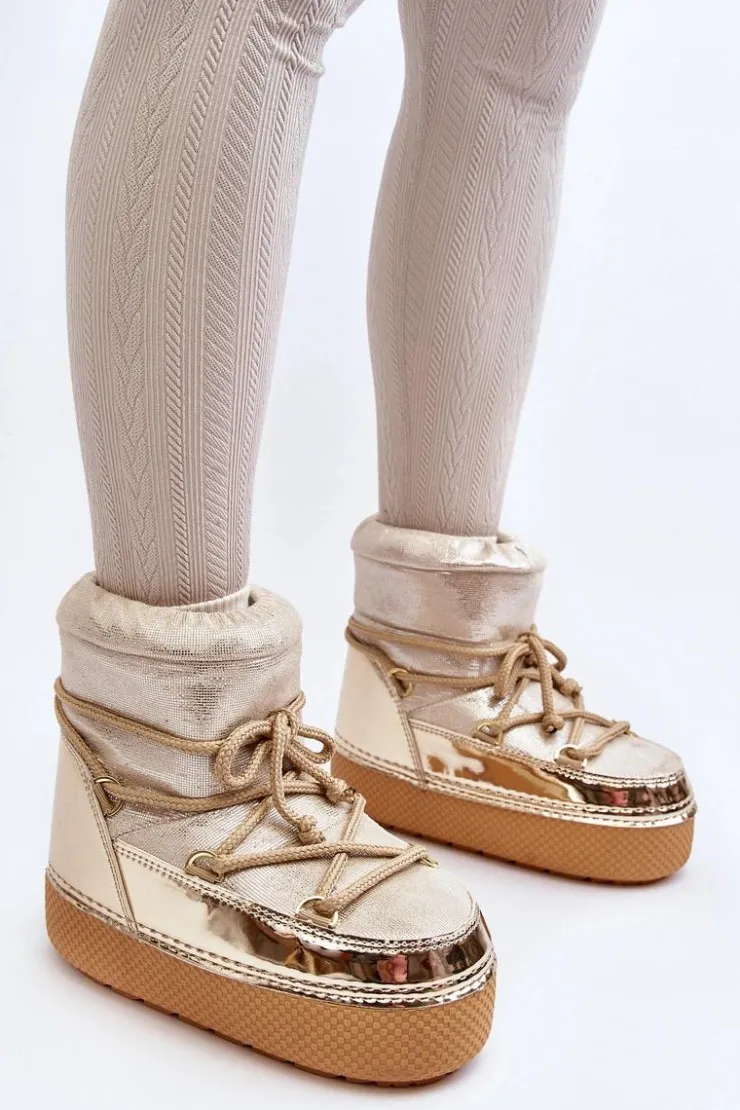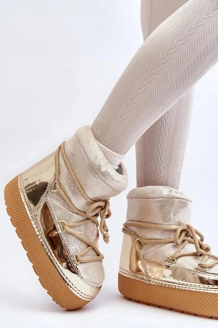 Te niezwykle przytulne i komfortowe damskie śniegowce zostały starannie stworzone z materiałów, które skutecznie chronią przed zimnem. Bezproblemowe wsuwanie tych śniegowców ułatwia szybką i wygodną zmianę obuwia, a dodatkowe sznurowanie z przodu gwarantuje idealne dopasowanie do Twojej stopy. Model ten, osadzony jest na masywnej platformie, która zapewnia stabilność i pewność kroków, nawet na śliskiej nawierzchni. Wnętrze śniegowców zostało starannie wyłożone miękką pianką oraz delikatnym materiałem. Przy wyborze rozmiaru prosimy sugerować się tabelą rozmiarów.