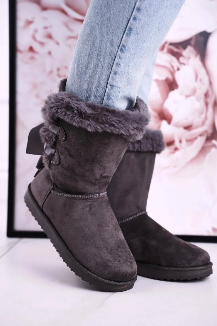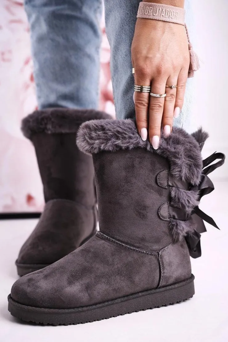 Boto Śniegowce Damskie*Damskie Śniegowce Ze Wstążką Ocieplone Futerkiem Szare Kaylee