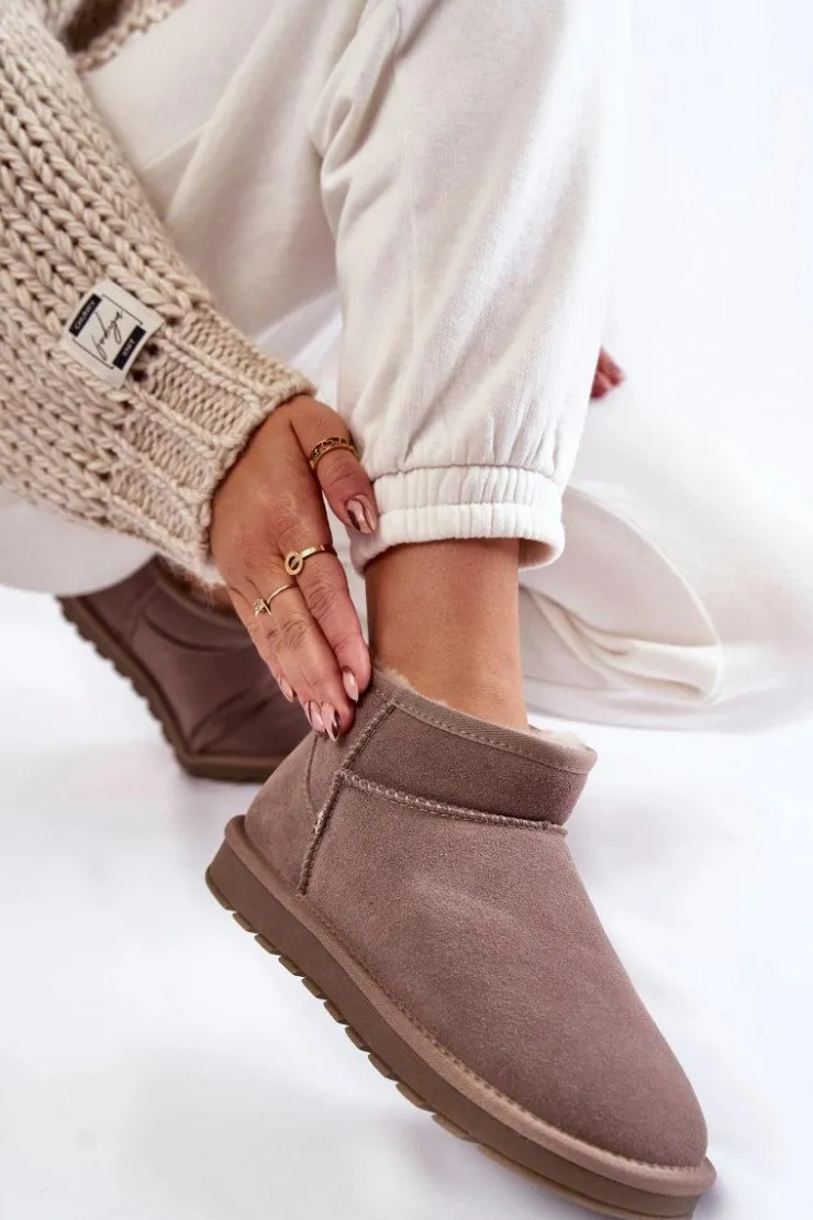Klasyczne śniegowce idealnie sprawdzą się podczas chłodnych dni. Wykonane z wysokiej jakości naturalnych skór. Wnętrze butów zostało ocieplone grubym futerkiem ekologicznym. Ten klasyczny model dopasujesz do wielu stylizacji. Botki posiadają gumową platformę, która świetnie odizoluje od podłoża i jest dodatkowo antypoślizgowa. Powinnaś mieć ten model w swojej szafie! Przy wyborze rozmiaru prosimy sugerować się tabelą rozmiarów.