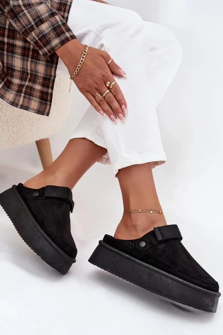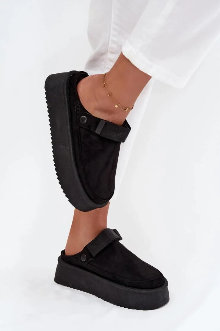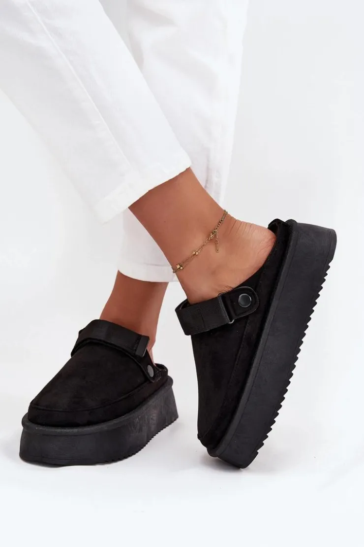 Boto Śniegowce Damskie|Kapcie Klasyczne*Śniegowce Damskie Na Platformie Z Rzepem Czarne Jorielle
