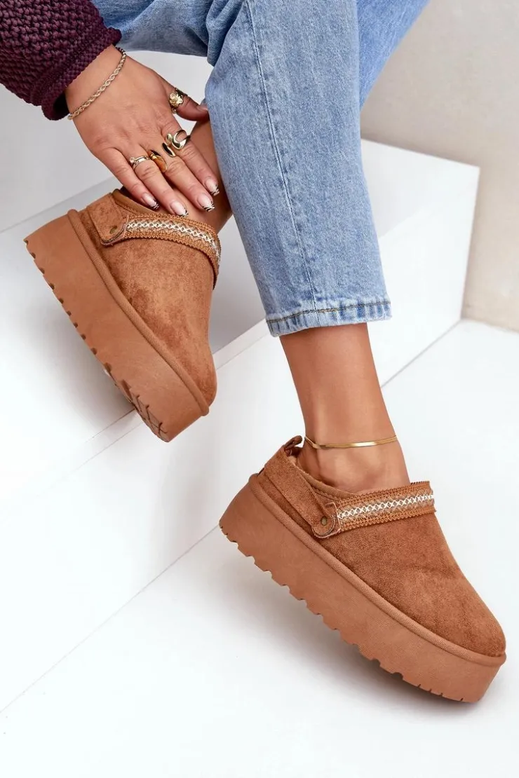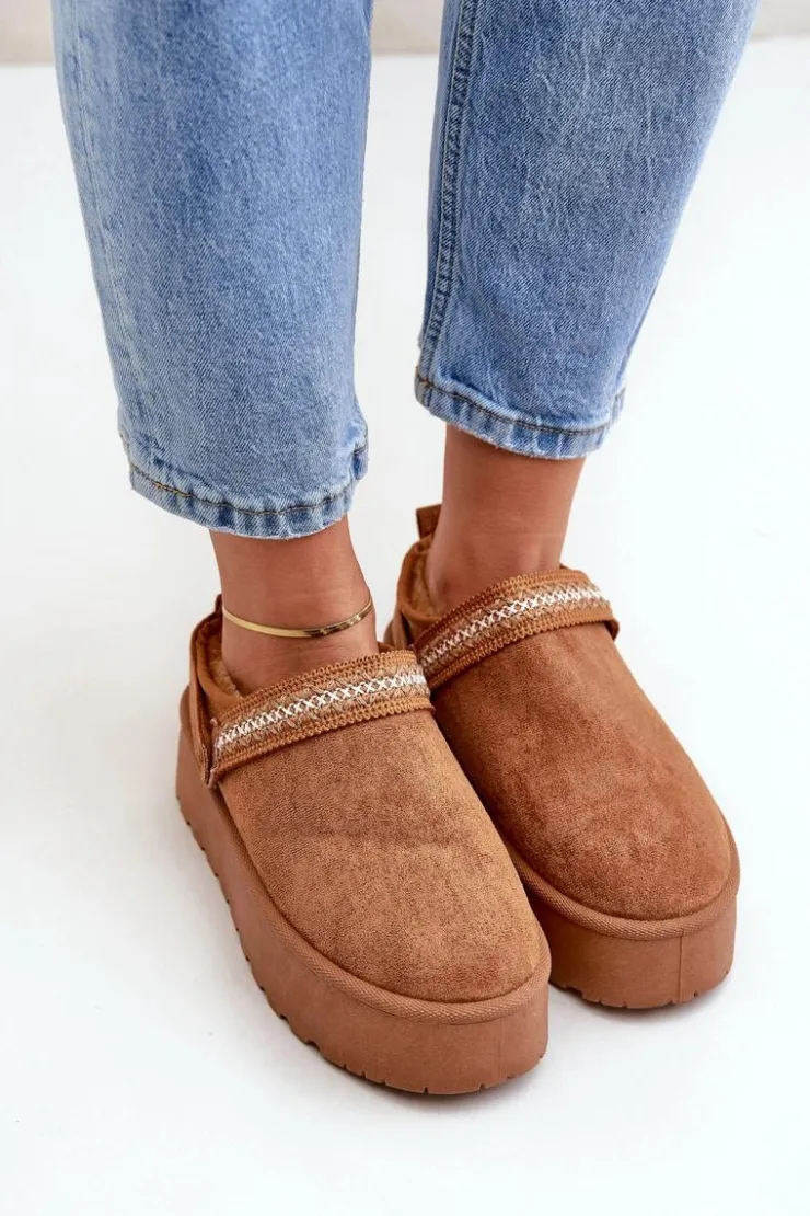 Stylowe śniegowce wykonane z eko zamszu to doskonały wybór na chłodniejsze dni. Osadzone na platformie. Pasek z tyłu buta zwiększy stabilizacji stopy. Ocieplane miękkim, grubym futerkiem. Górę cholewki zdobi haft, który nadaje im wyjątkowego uroku. Ten niezwykle stylowy fason powinnaś mieć w swojej szafie! Przy wyborze rozmiaru prosimy kierować tabelą rozmiarów.